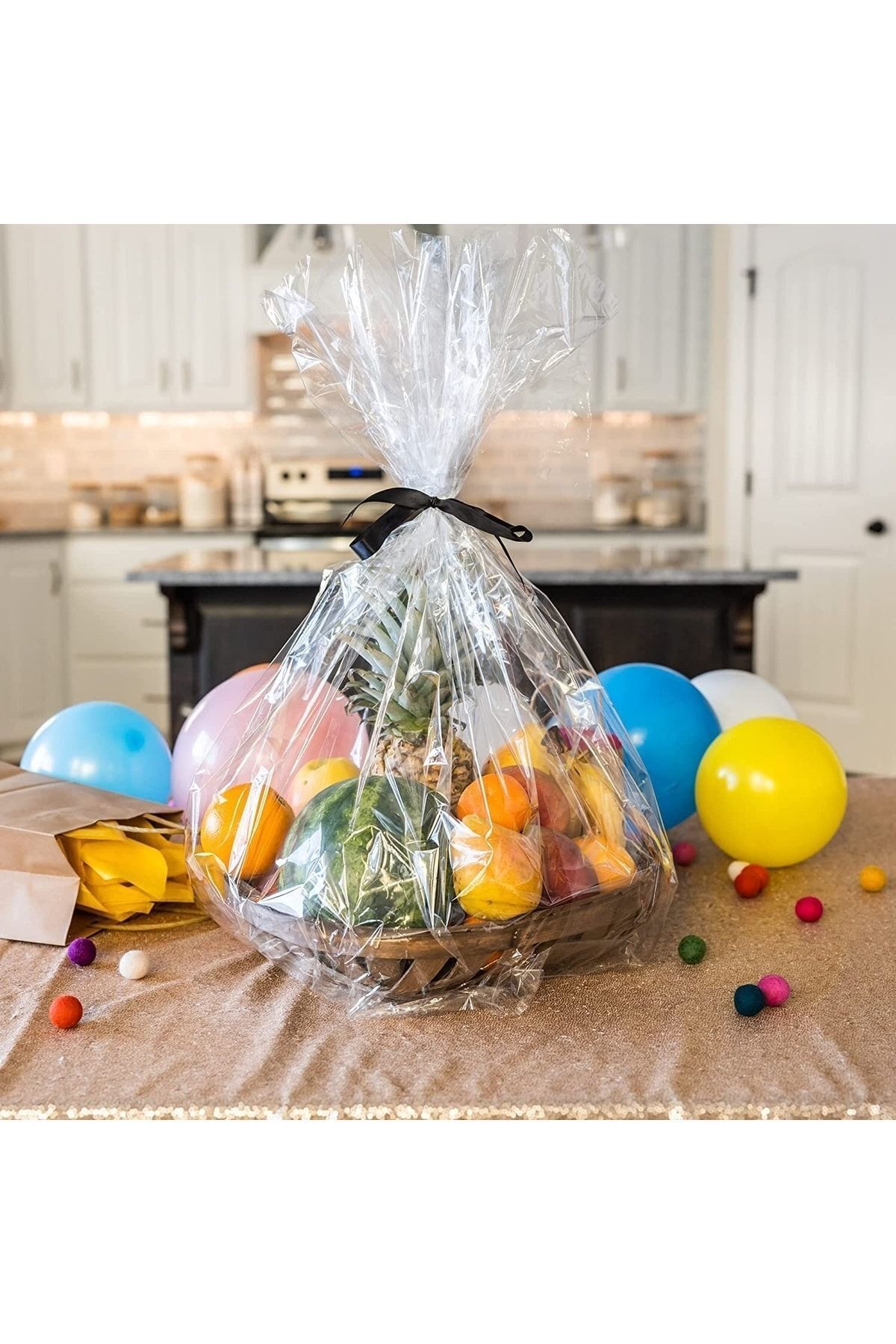 (ÇOKLU KULLANIM) Sepetleri, pastaları, hediyeleri, fotoğraf çerçevelerini, şarap şişesini, meyveleri, atıştırmalıkları, kozmetik ürünlerini, mağaza giysilerini, doldurulmuş oyuncakları, yatak takımlarını, günlük ihtiyaçları vb.