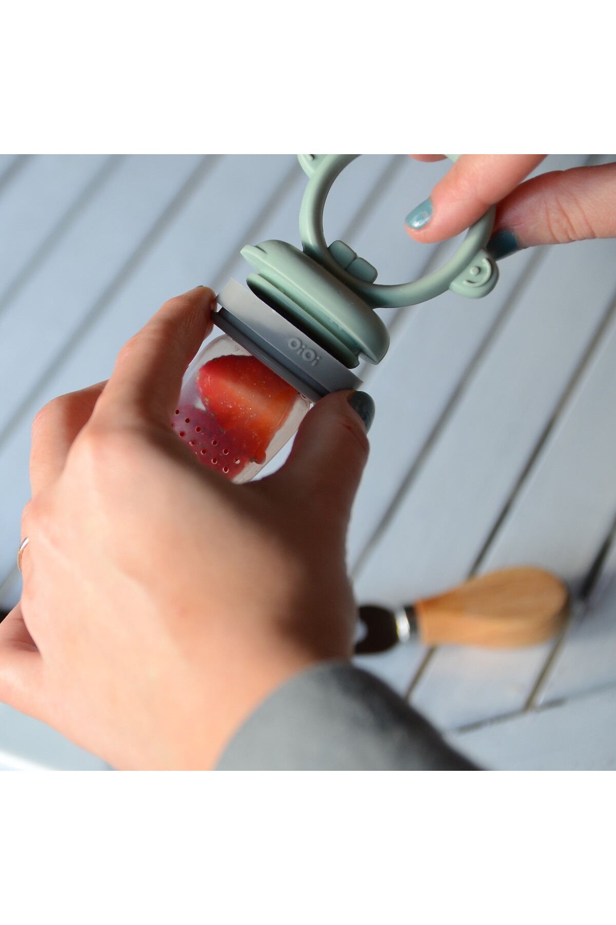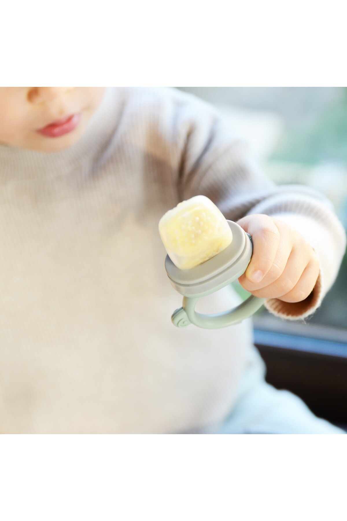 Başlık uzerindeki delikler sayesinde bebeğiniz meyve/sebzeleri guvenli bir şekilde kendi başına yiyebilir.