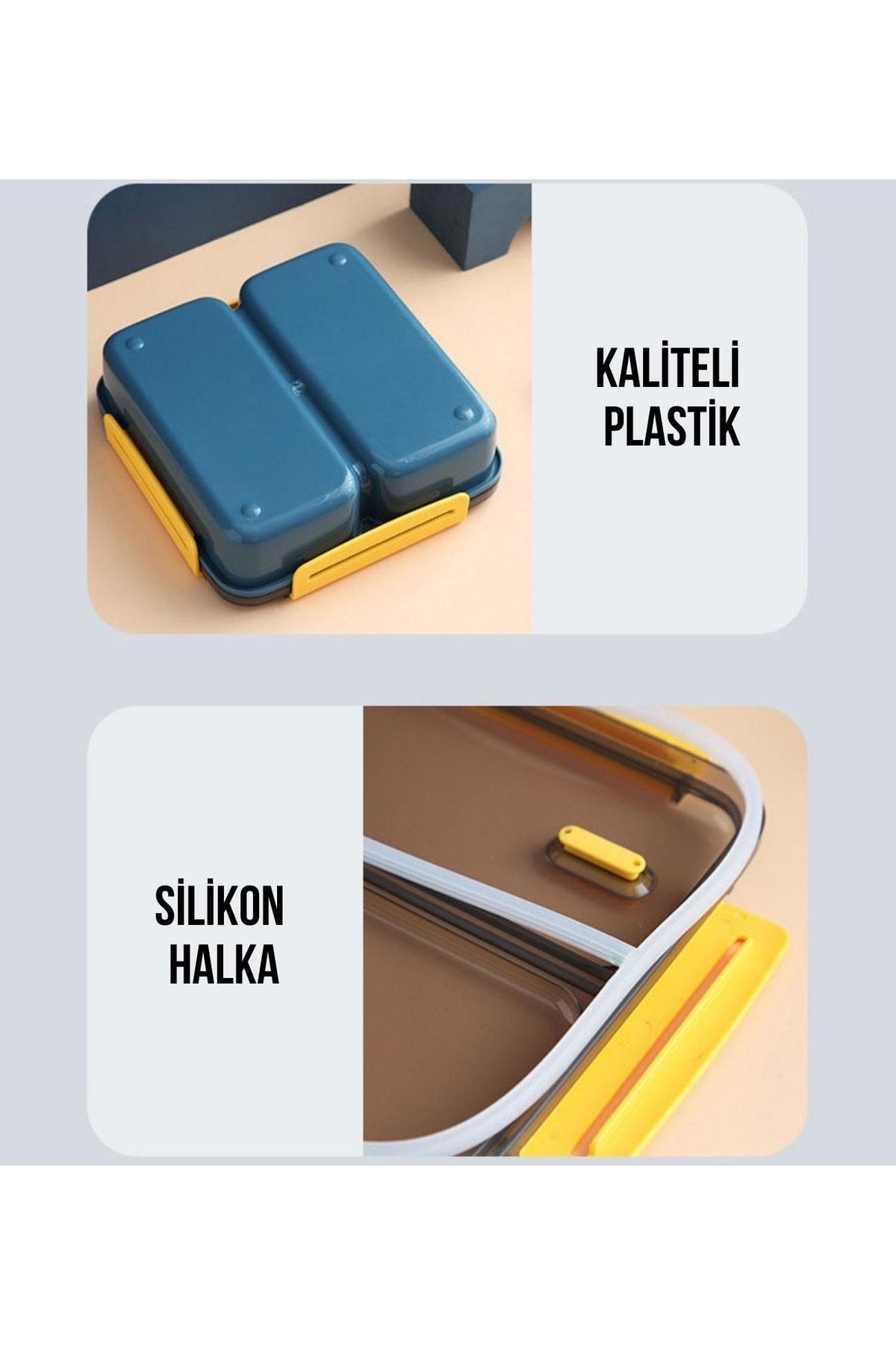 Yemek kutusunun kapaklarında bulunan silikon halkalar sayesinde sızdırma , dökülme , sızdırma vb.