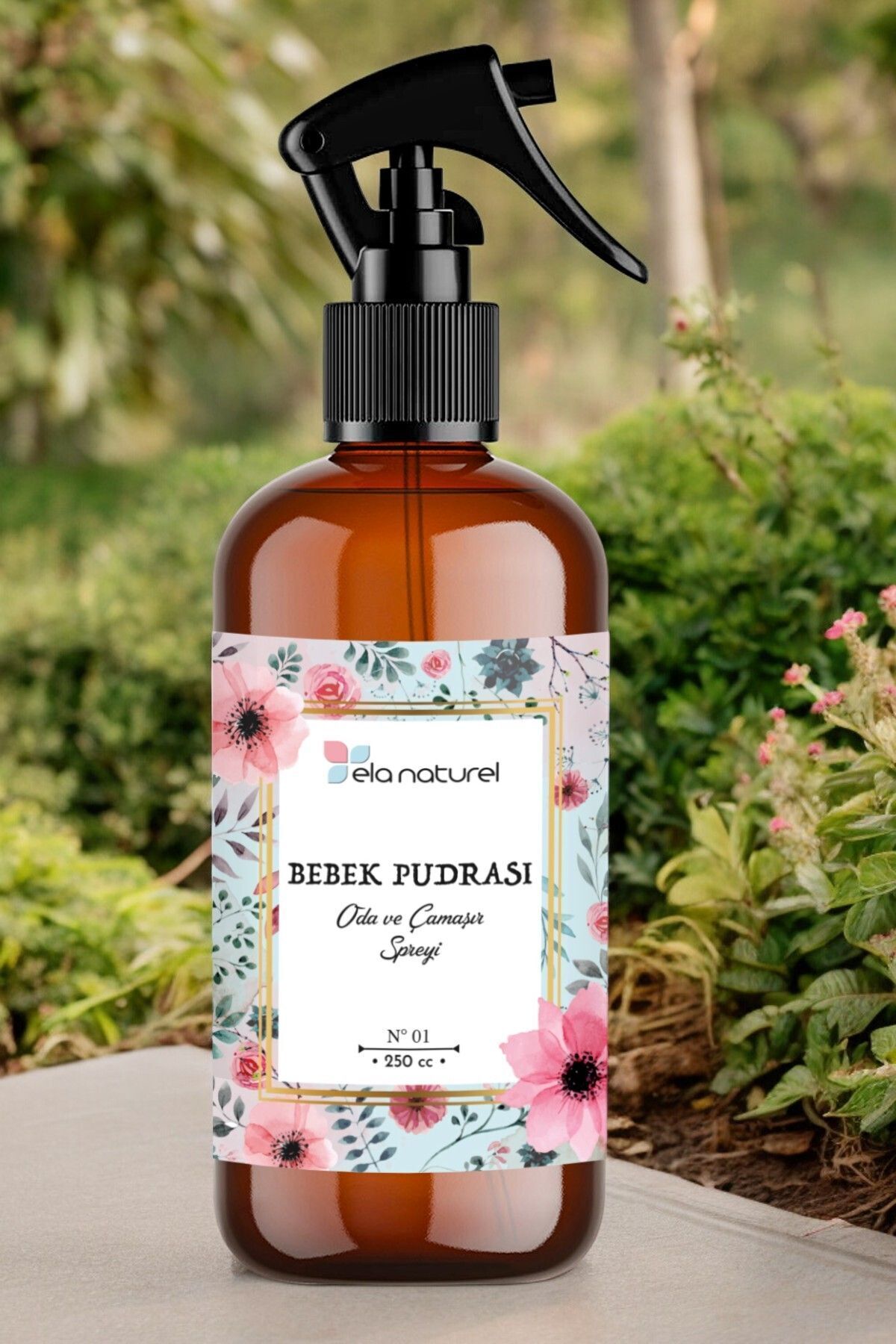 Bebek Pudrası Çamaşır Parfümü Sprey Oda Kokusu Ela Naturel oda kokusu, hem çamaşırlarınızın hem de odanızın havasını değiştirmek için egzotik ve canlandırıcı aromalarla tasarlanmıştır
