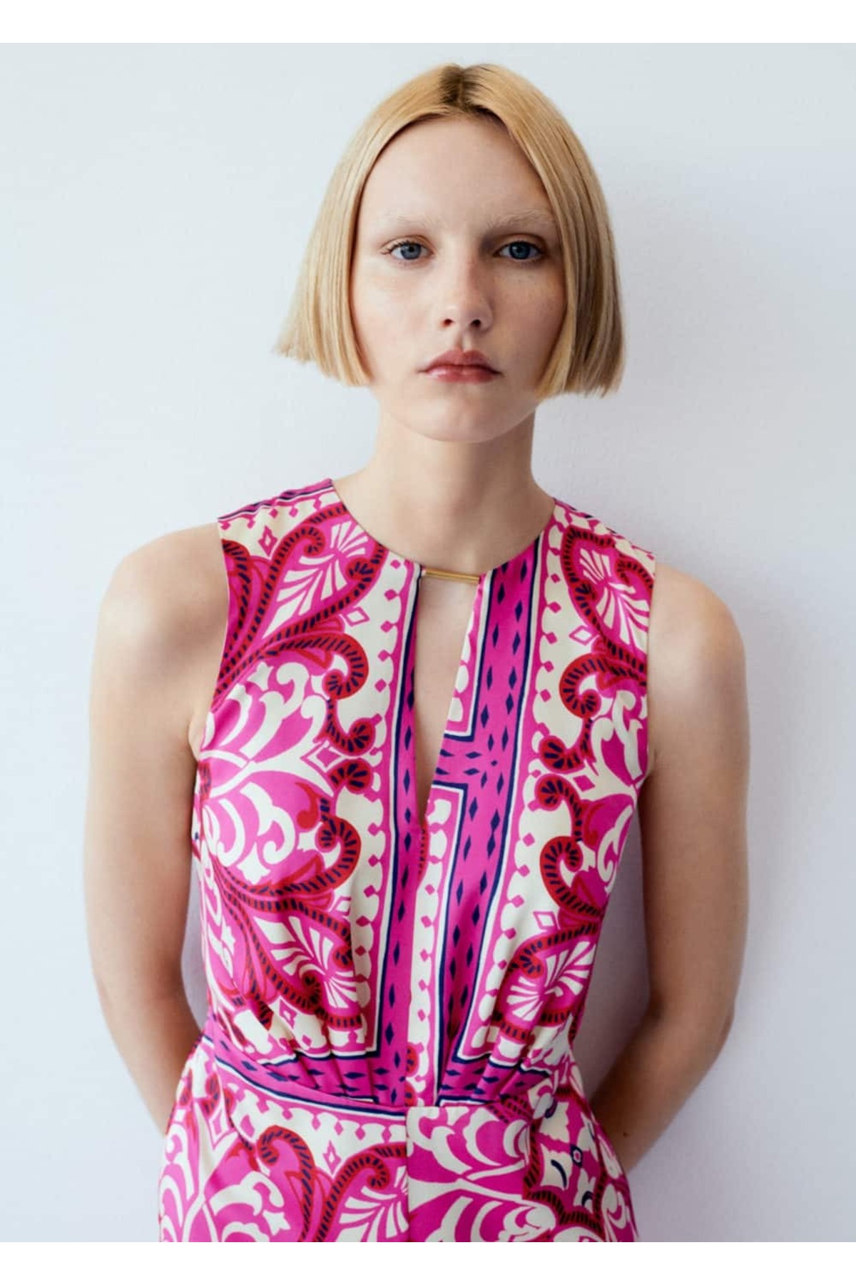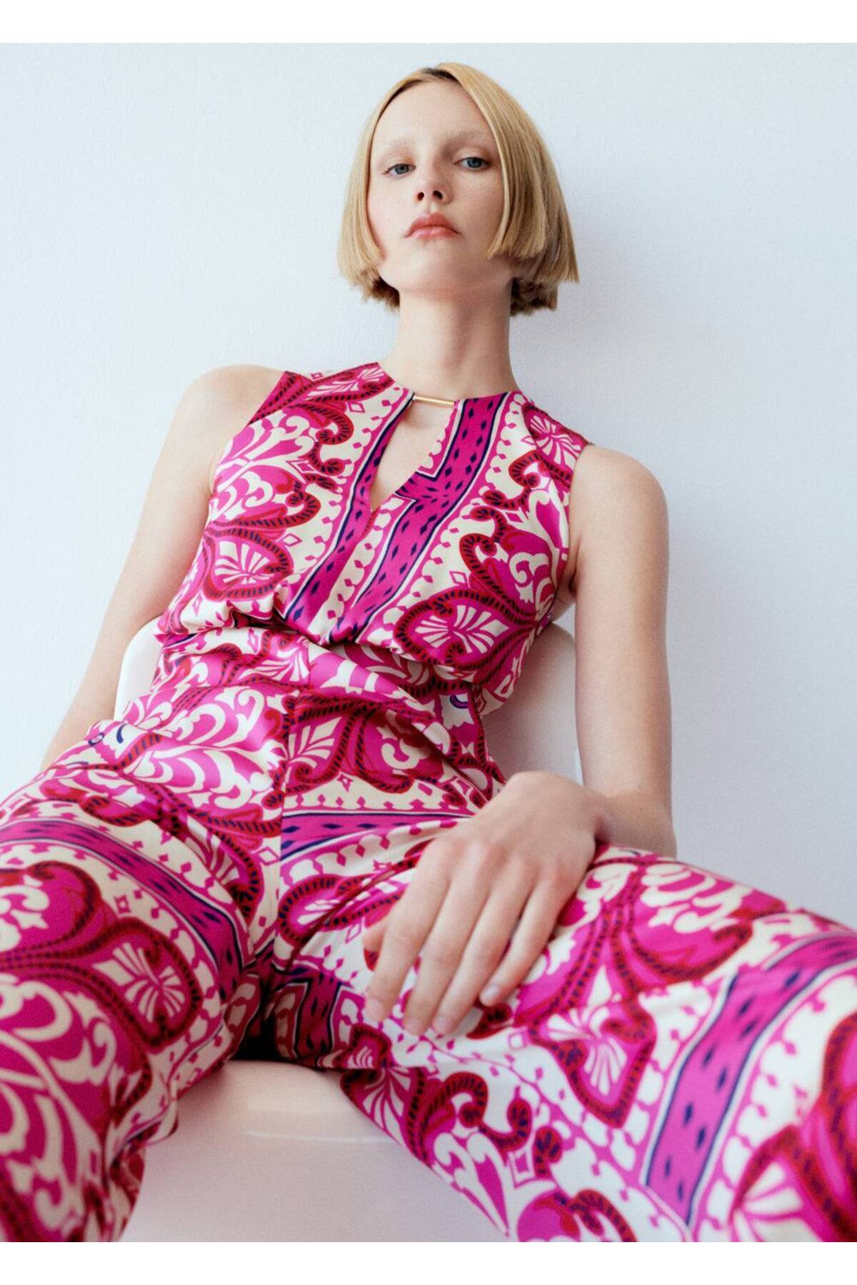 Desenli yapısıyla göz alıcı bir stil yaratırken, düz renklerle kolayca kombinlenebilir