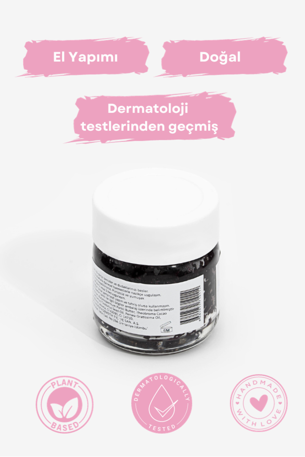 Ürünümüz Sağlık Bakanlığı onaylı olup, dermatolojik testlerden başarıyla geçmiştir. Hayvan dostlarımız üzerinde test yapılmamıştır. Hijyenik nedenlerden ötürü koruma bandı açılmış ürünün iadesini kabul etmiyoruz. Kullanımı: Temiz ve kuru dudaklara nohut tanesi kadar uygulayın ve 30 saniye dairesel hareketlerle masaj yapın. İster yalayın ister bir mendille fazlalığı alın. Daha yumuşak ve pürüzsüz dudaklar için haftada 2-3 kez tekrarlayın.*Kullanmadan önce yama testi yapın ve tahriş olursa kullanmayın. Uyarı: Lütfen peelingin tamamını yemeyin. Dilerseniz uygulamadan sonra dudakları yalayabilirsiniz ama kaşık kaşık yemeyin. Ne de olsa asıl amacı dudakları eksfoliye etmek, beslemek ve onarmak. :) Raf ömrü: 6 ay.