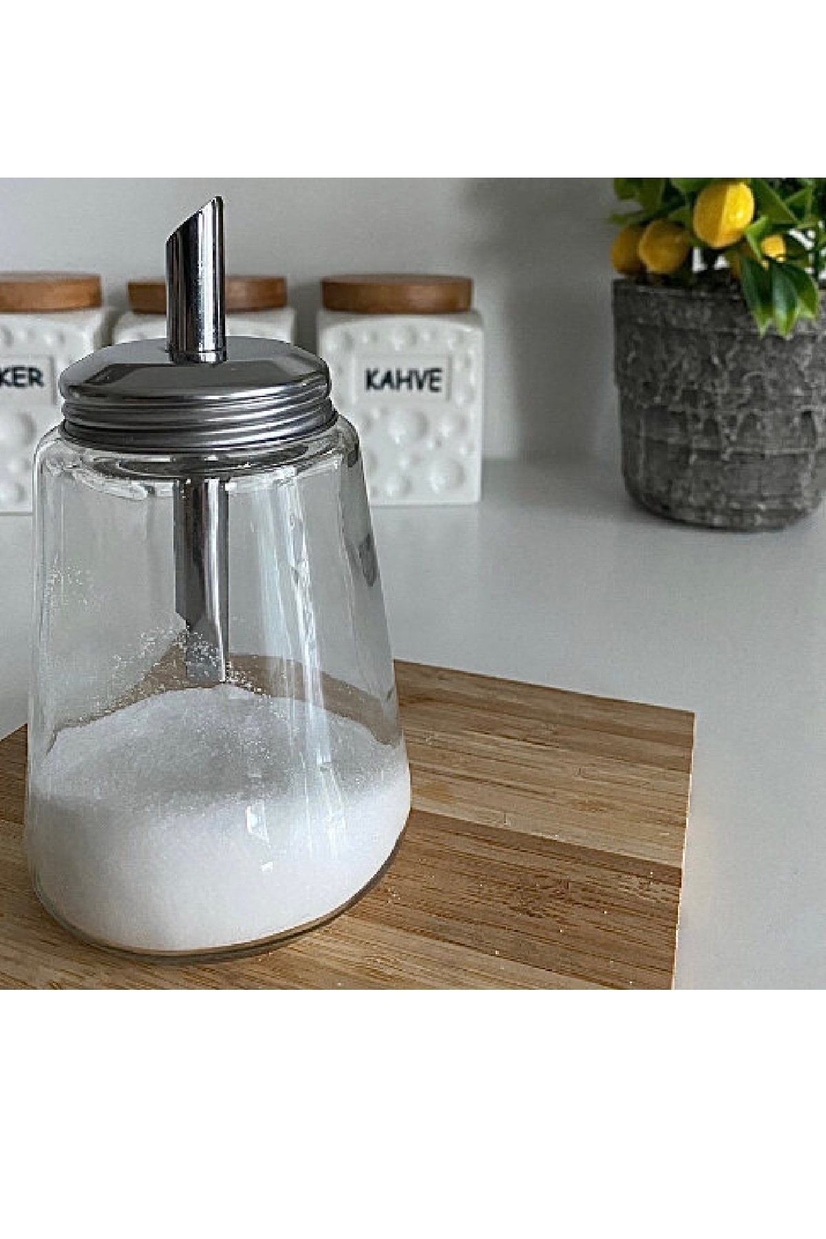Şık ve modern tasarımıyla her mutfak dekorasyonuna uyum sağlayan dökme toz cam şekerlik, 1 parça olarak sunulur