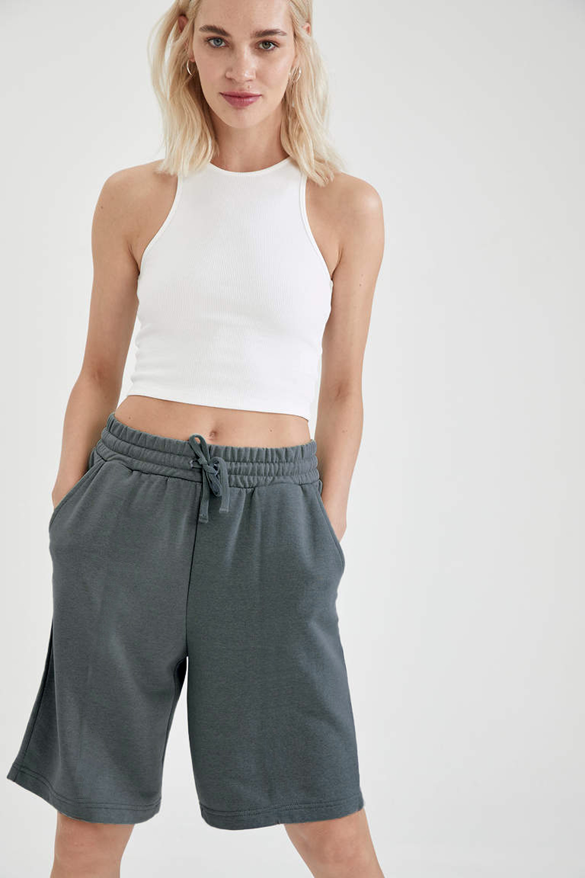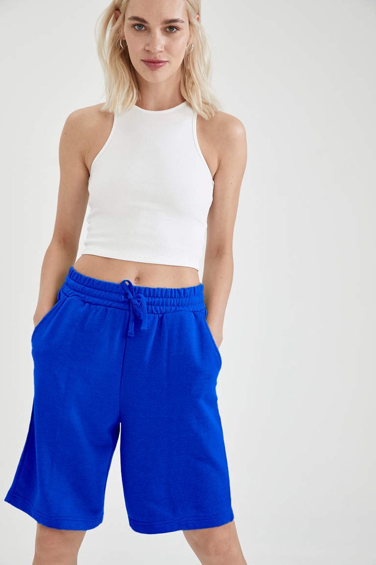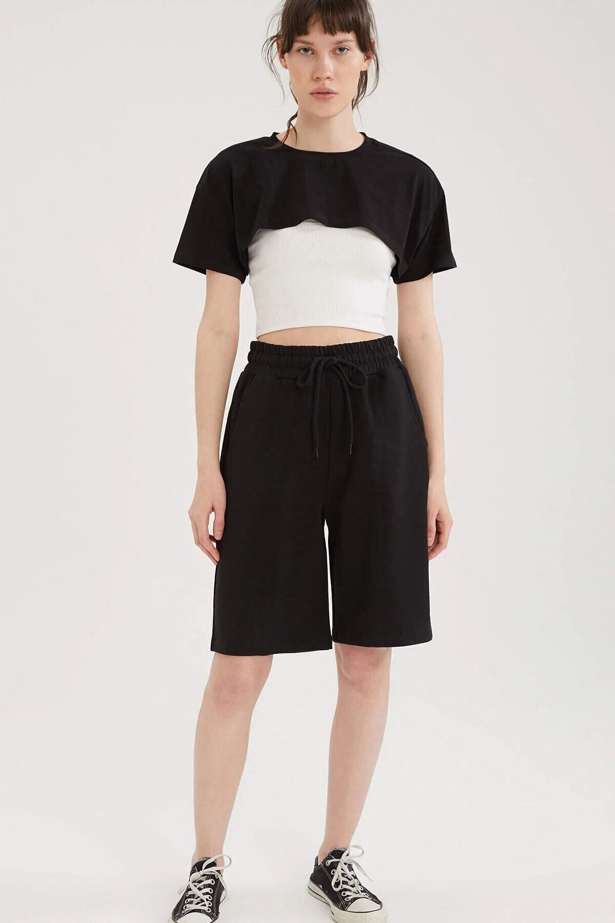 Comfort Label Bağcıklı Oversize Uzun Unisex Bermuda Kapri Şort