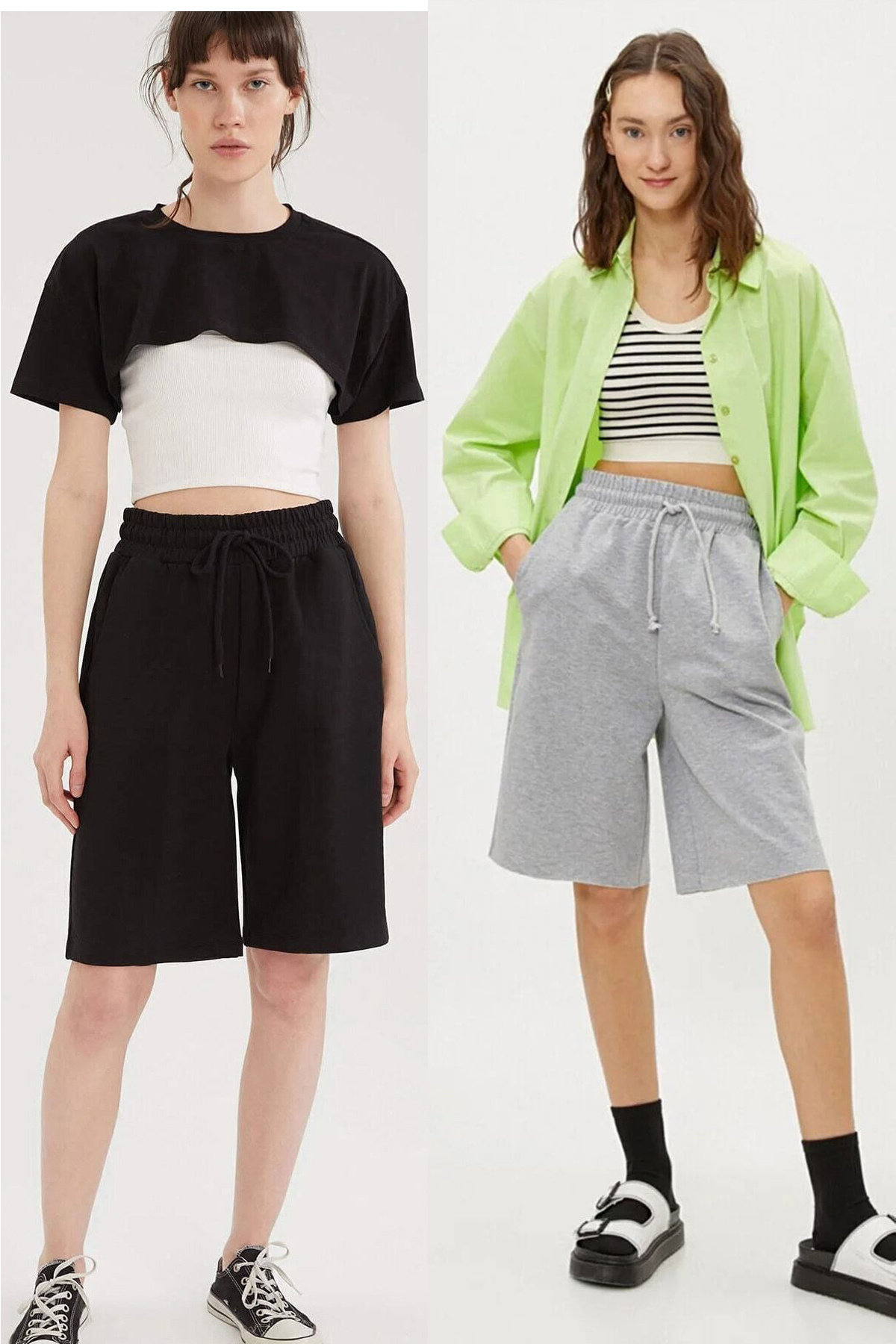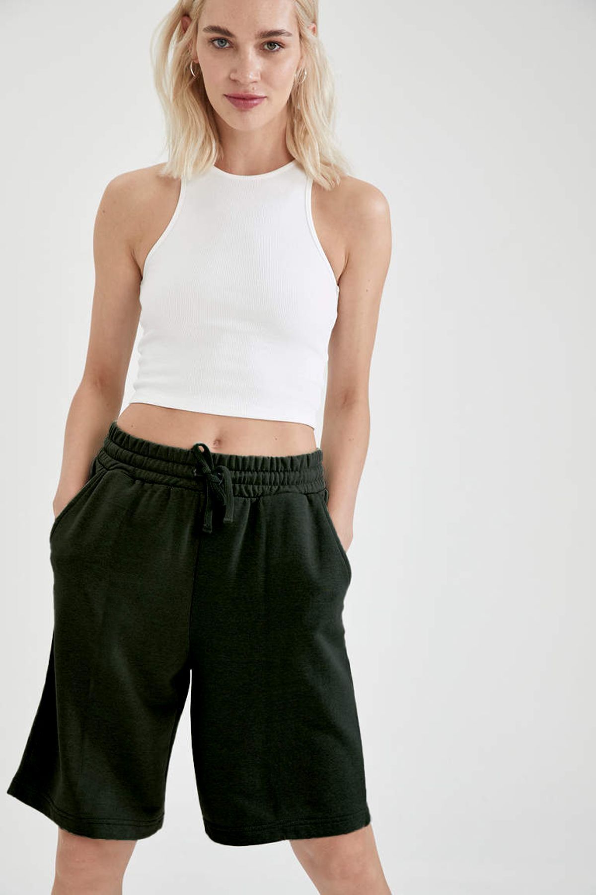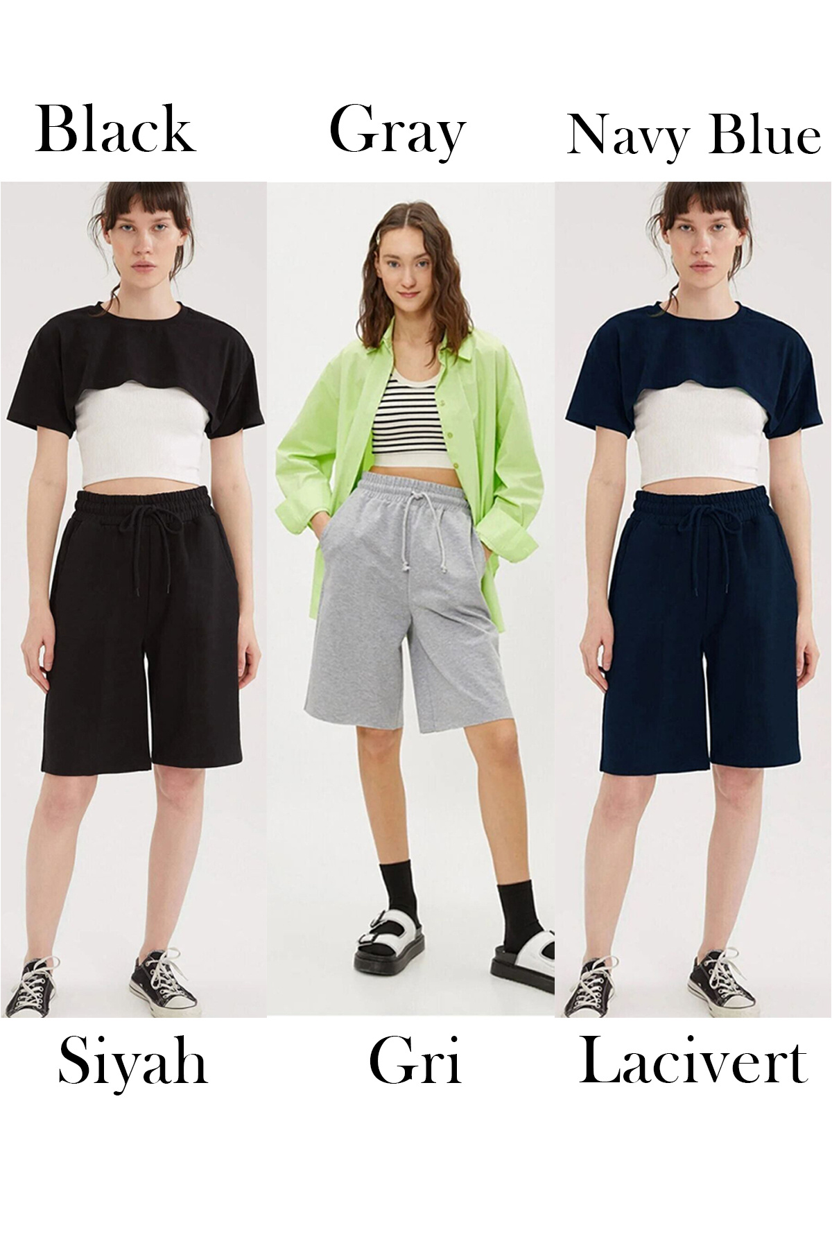 Comfort Label Bağcıklı Oversize Uzun Unisex Bermuda Kapri Şort