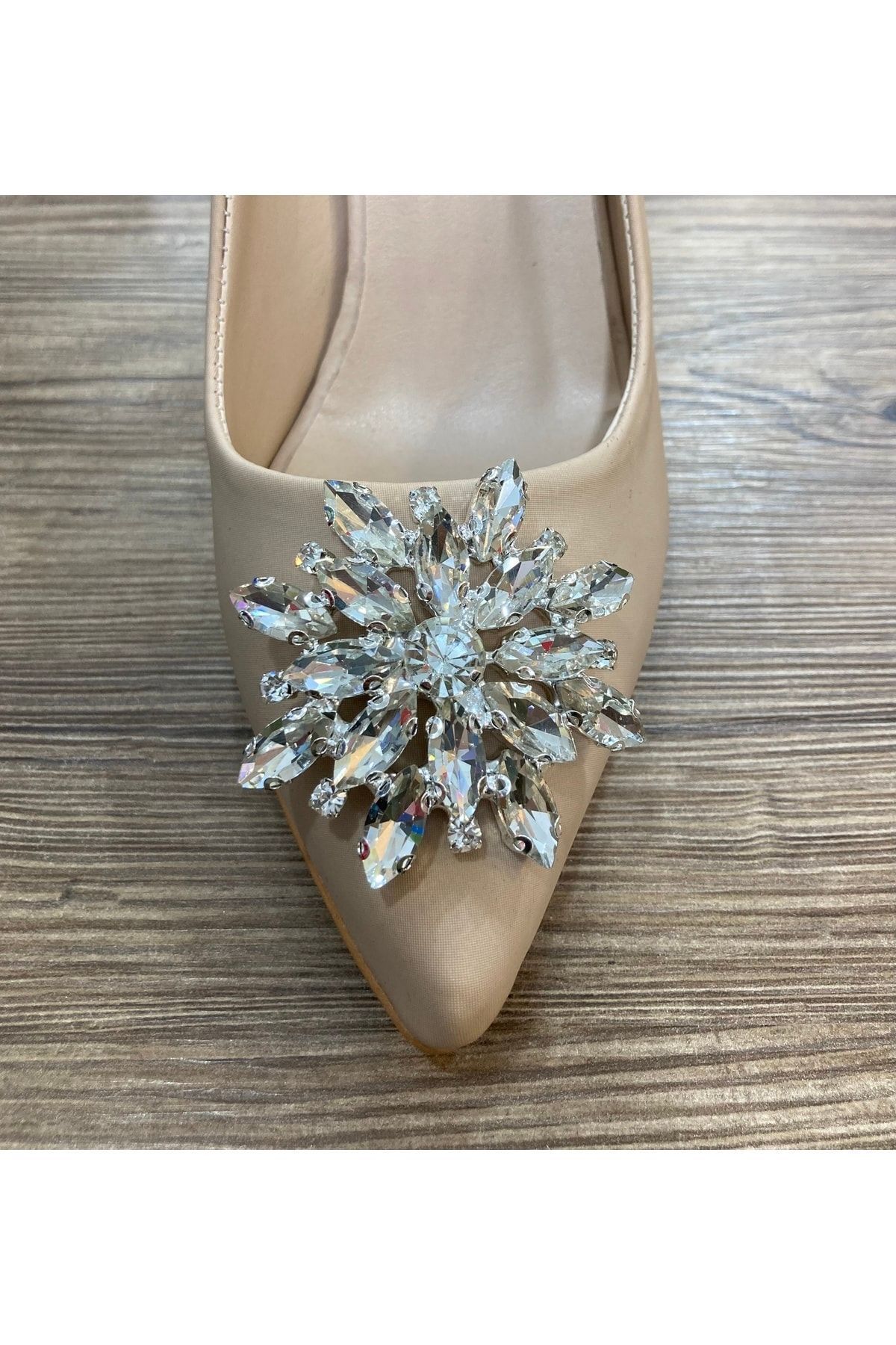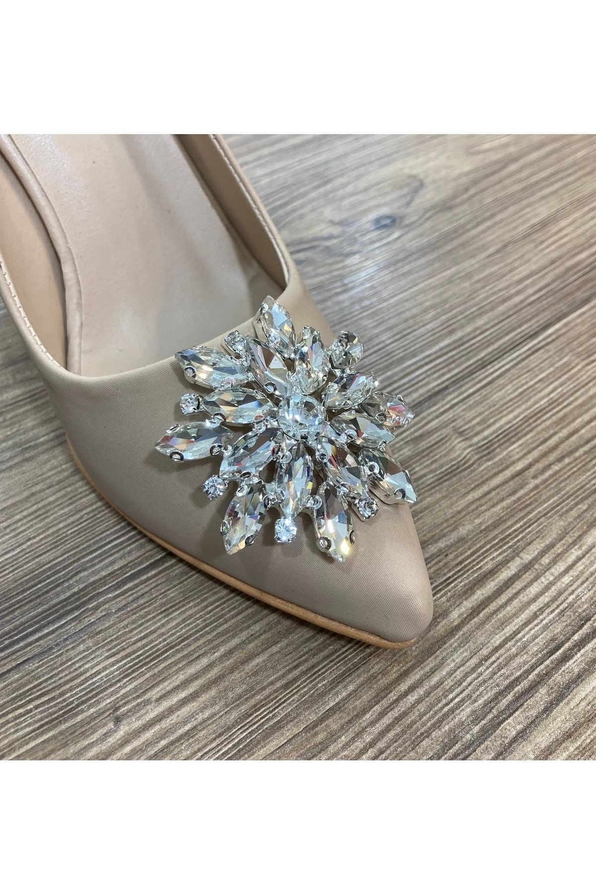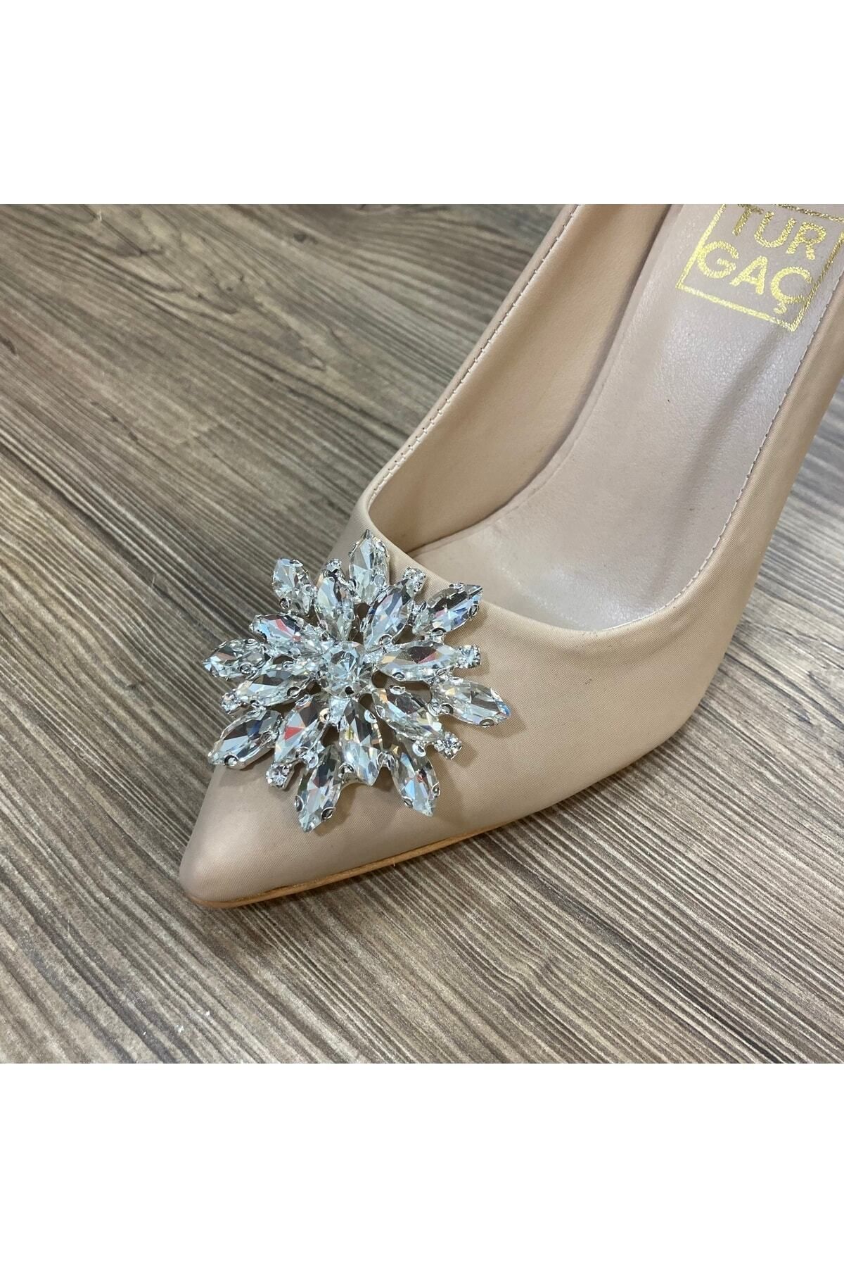 Zarif ve sade tasarımıyla her kıyafetle uyum sağlayan düz desenli kristal taşlı kartanesi ayakkabı tokası