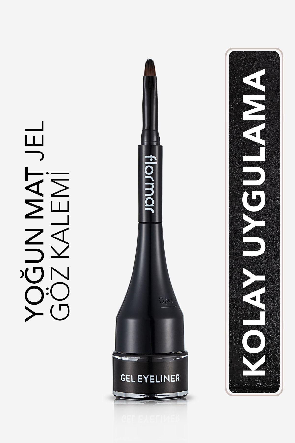 Flormar Özel Fırça Başlıklı Yoğun Pigmentli Mat Jel Eyeliner (Siyah) 001, etkileyici bir göz makyajı yaratmak için gözleri belirginleştirmeyi sağlar.