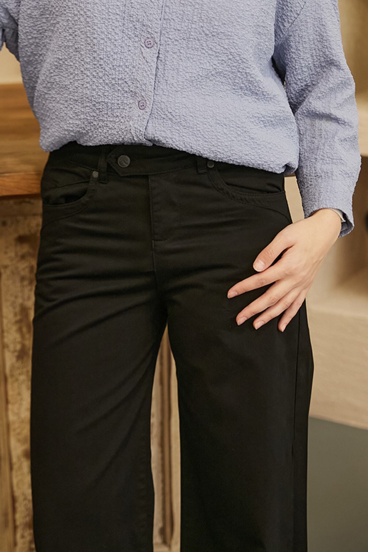 Yüksek bel kesimi ile vücut hatlarını nazikçe sararak feminen bir siluet oluşturur