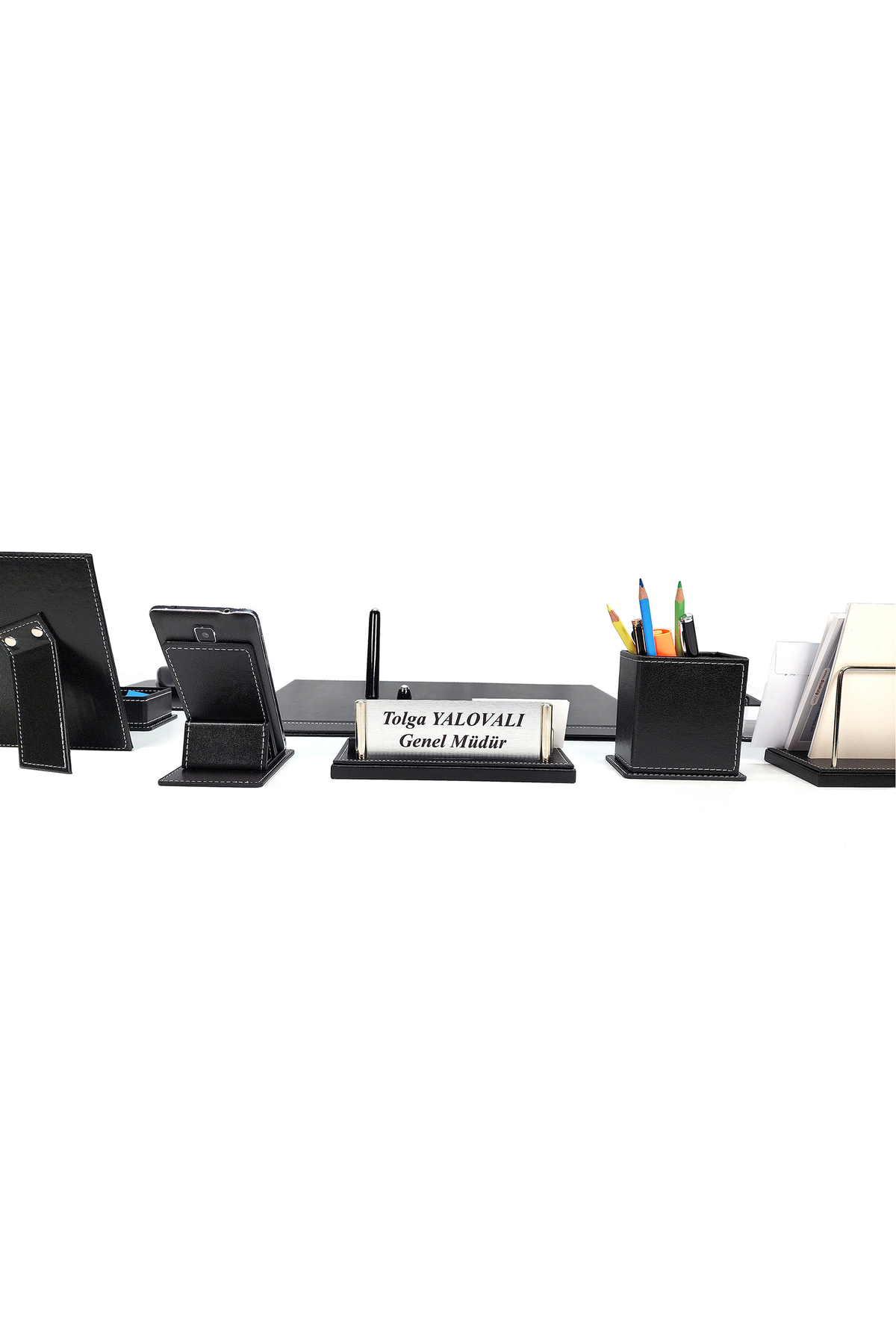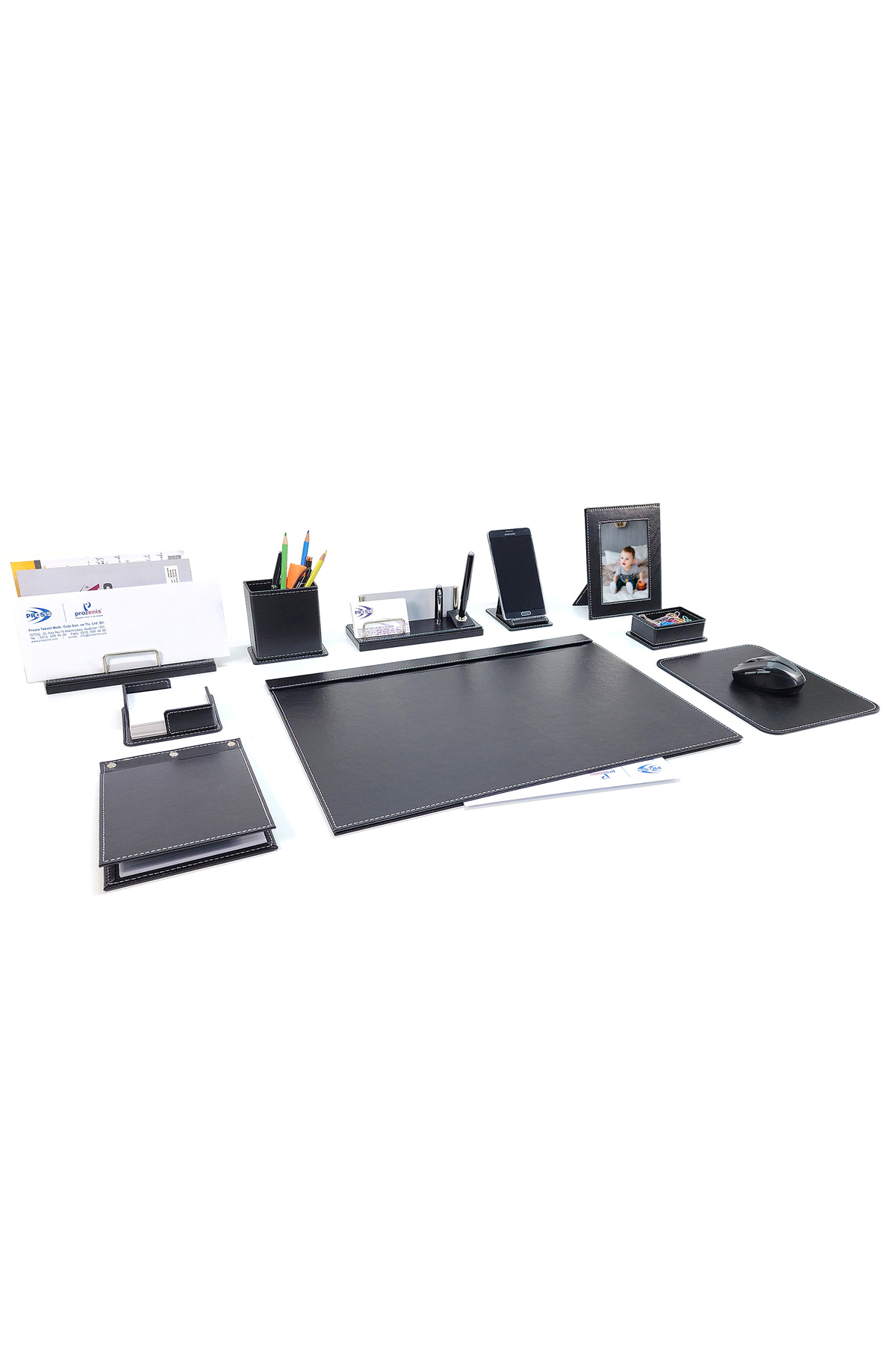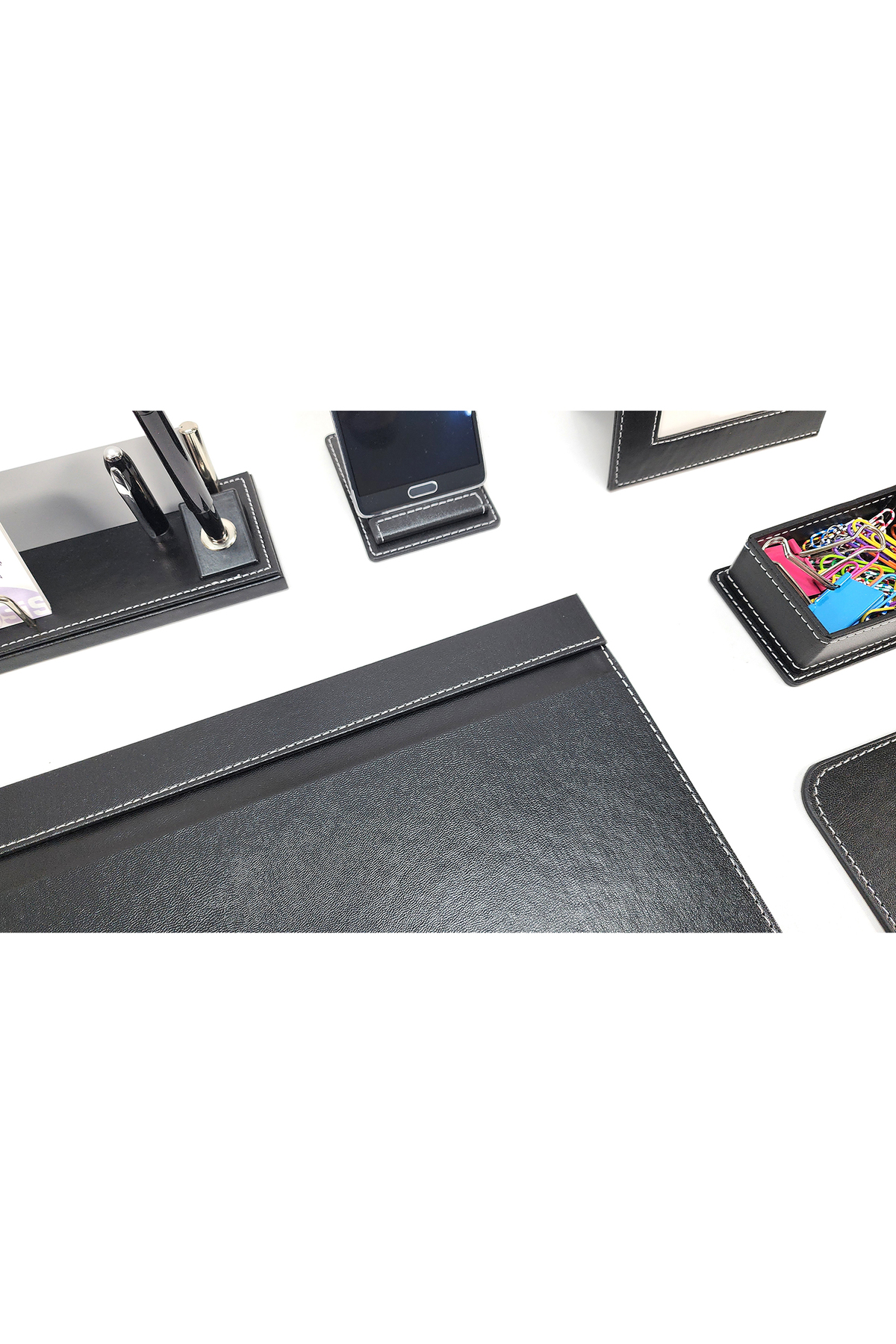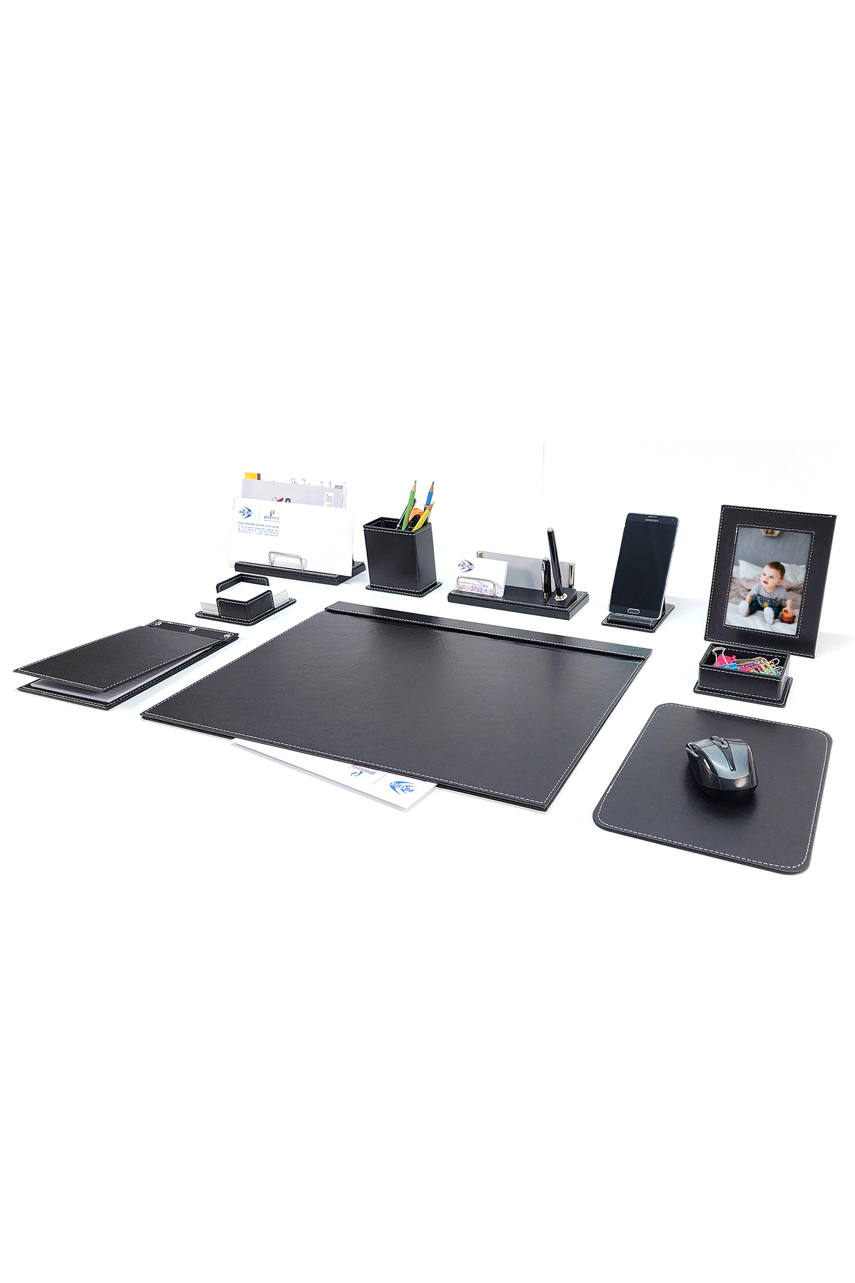 ) - Kapaklı Sümen 51x36cm - Masaüstü kapaklı bloknot 21x14cm - Telefon Standı (Tüm telefonlar için Uygundur) - 2 Bölmeli düzenleyici zarf, mektup, evrak ayracı - Kalemlik - Notluk - Resim Çerçevesi - Ataçlık - Mouse Pad - Renk: Siyah - Kodlar: 2120, 2417, 2430, 2405, 3130, 2615, 3133, 2415, 3132, 2420 - Barkod no: 8682588474088