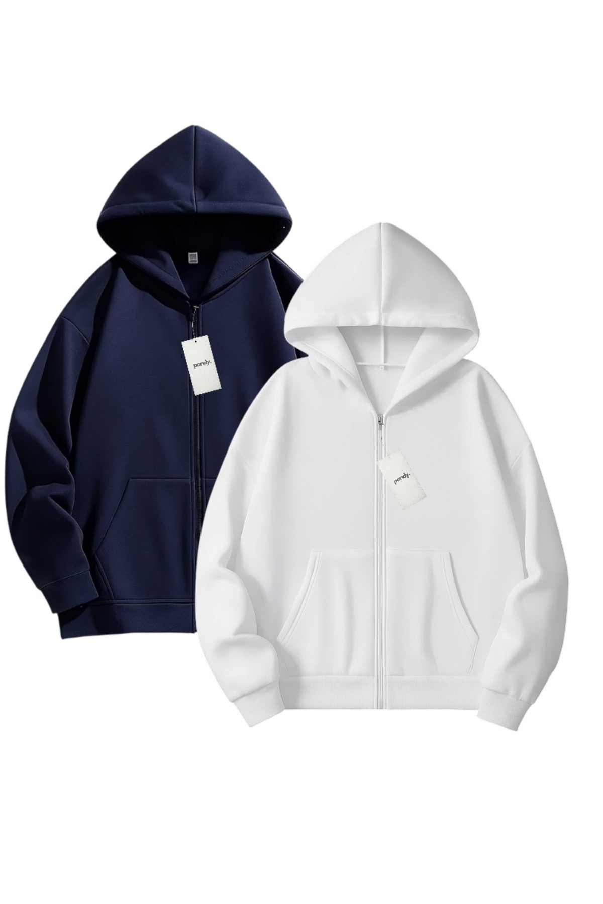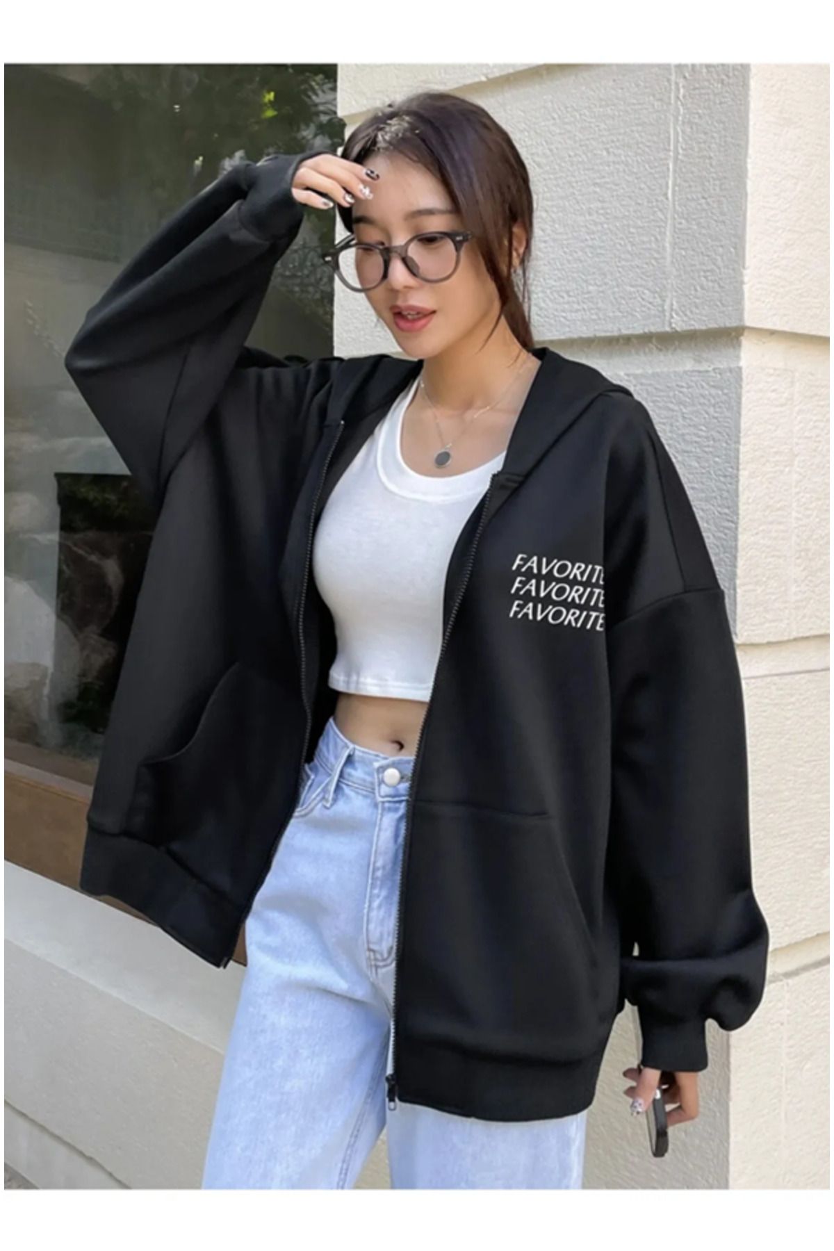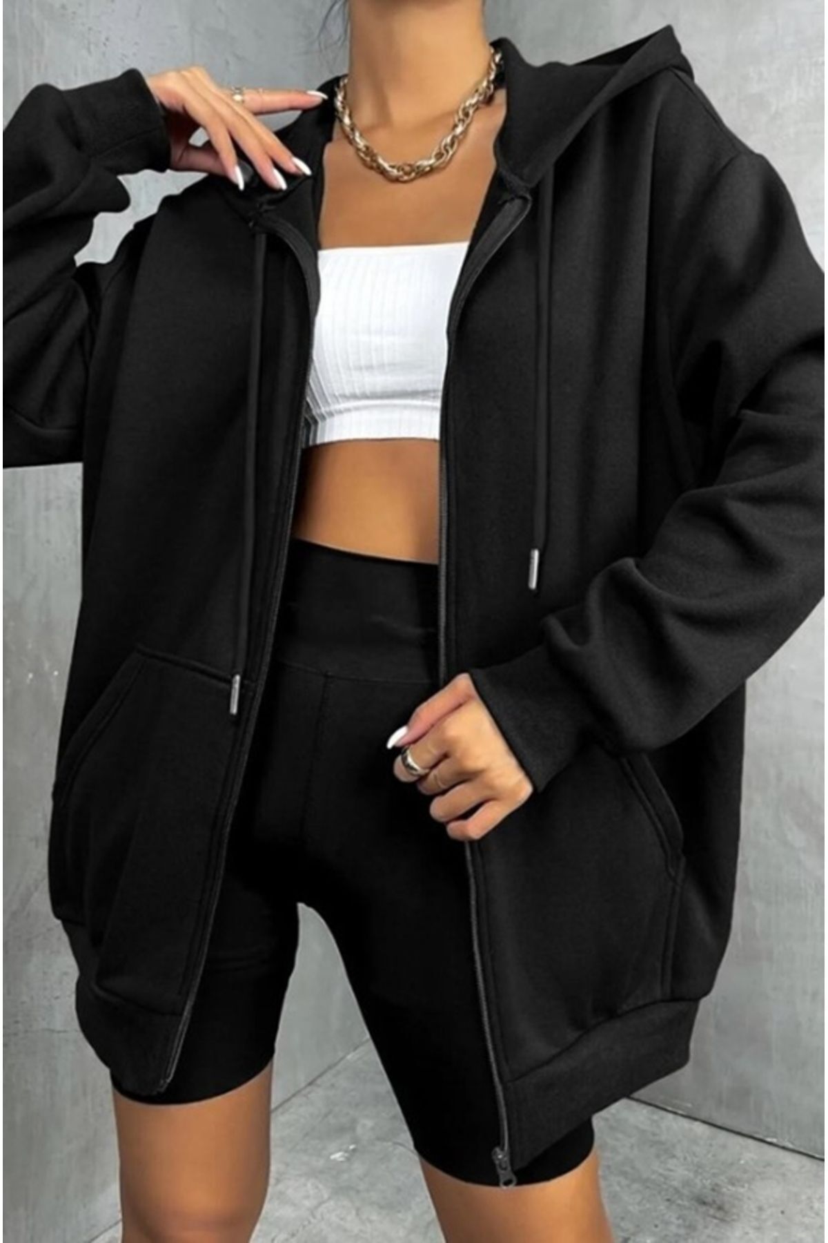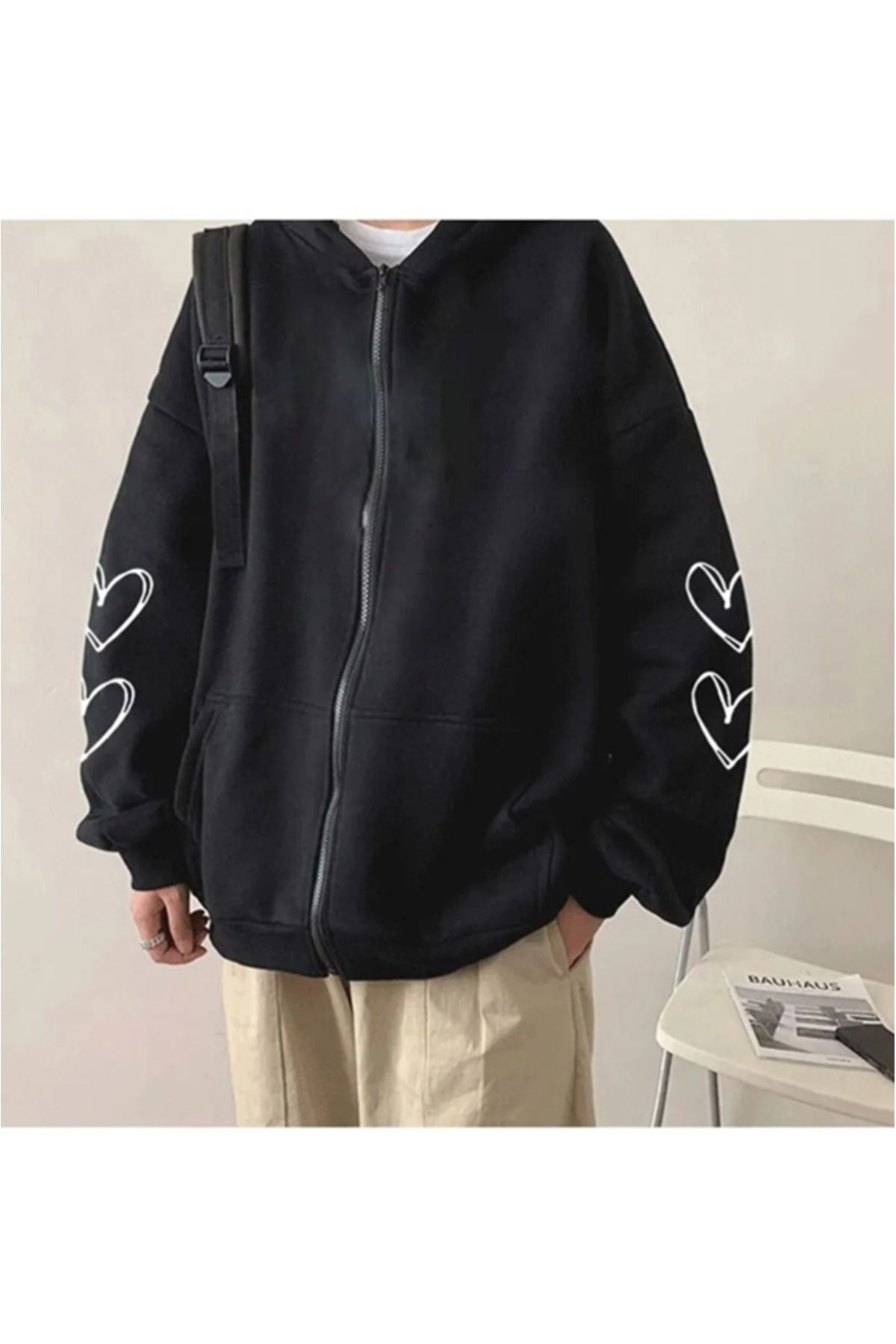 Günlük kullanım için ideal, rahat ve şık tasarımıyla dikkat çeken kapüşonlu fermuarlı oversize mevsimlik unisex sweatshirt.