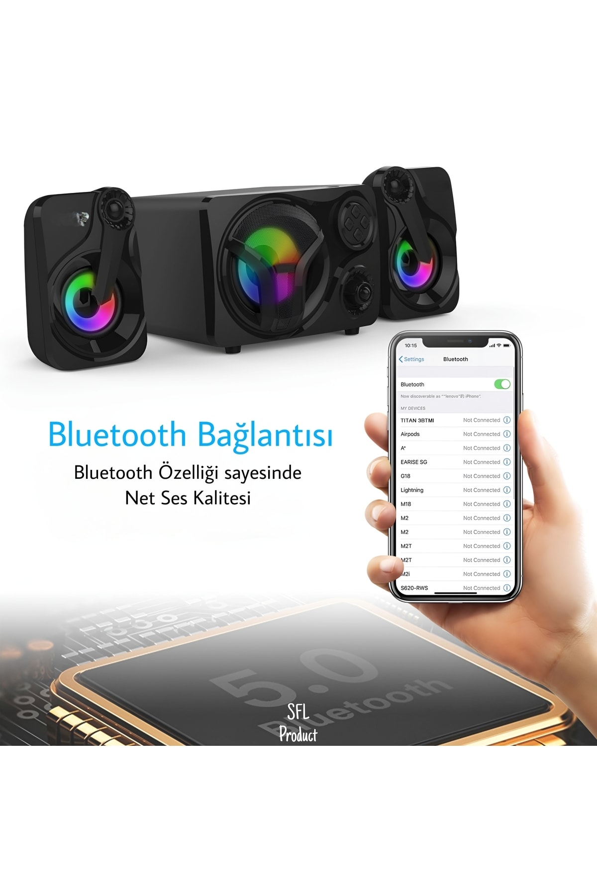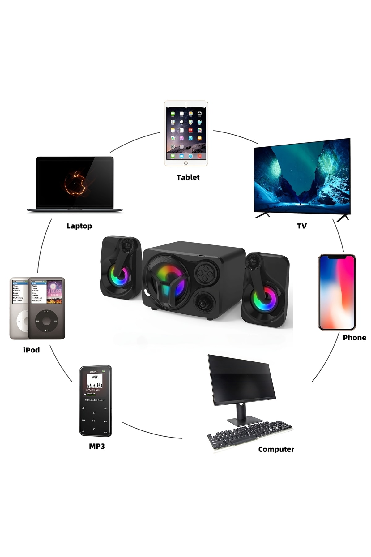 Bluetooth 5.0 bağlantısı sayesinde hoparlörler akıllı telefonlar, tabletler, dizüstü bilgisayarlar, MP3 çalar, oyun konsolları, projektörler vb. gibi çoğu Bluetooth cihazıyla kullanılabilir