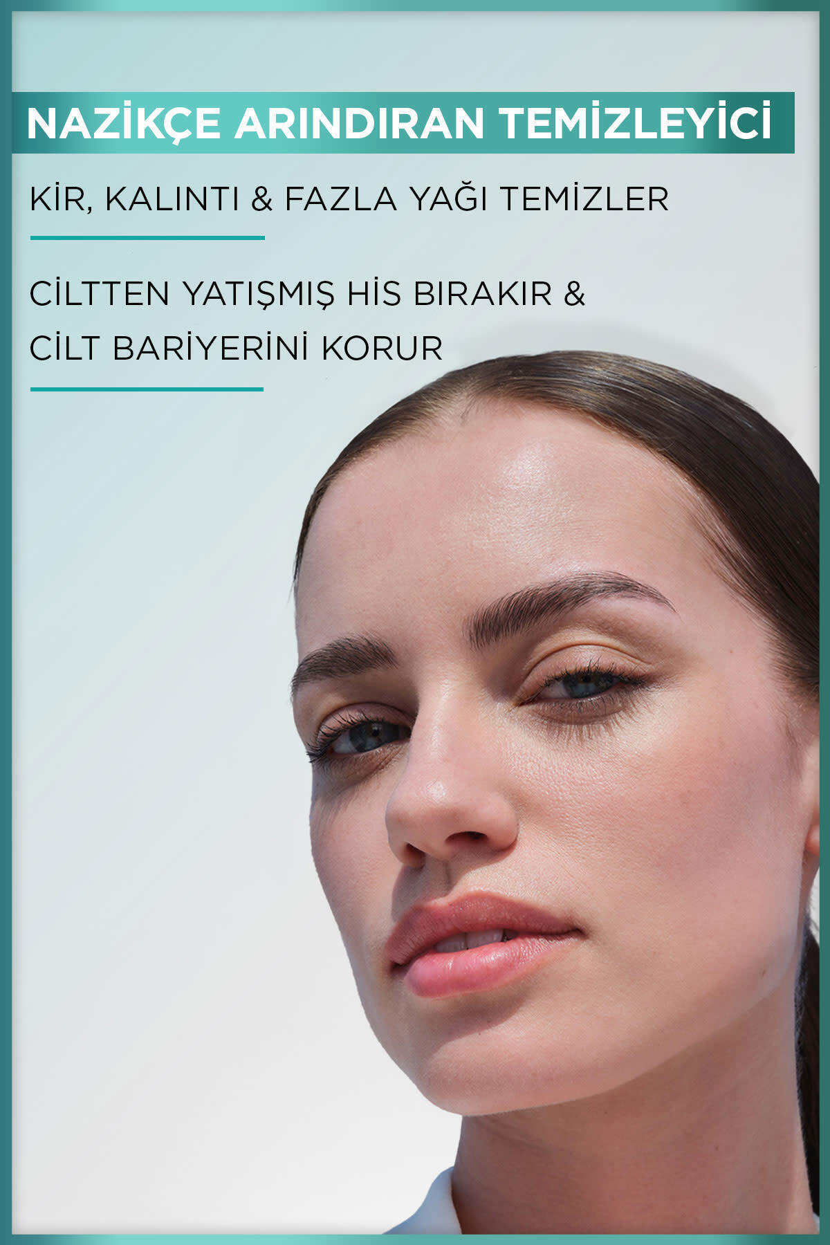 KANITLANMIŞ ETKİ*: Nemlendiren Temizleyici ile cilt anında yatışmış hisseder, yağ, kir ve makyajdan arınır. İki hafta düzenli kullanım sonrasında gözenek görünümü %85 azalır.