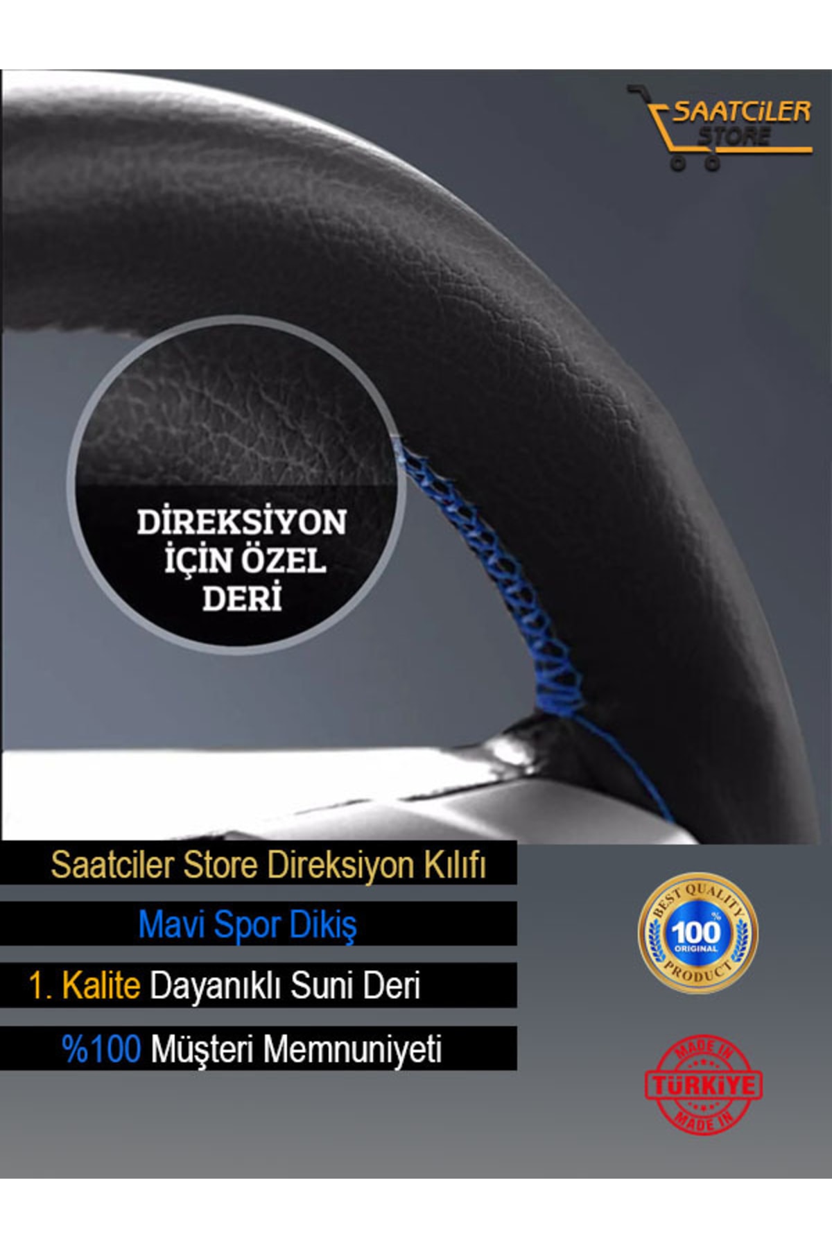 Yumuşak 1. Kalite malzemeden Yerli Türk Malı olarak Üretilmiş,Yerli Mavi İpli Orijinal Görünümlü Deri Direksiyon Kılıfı.