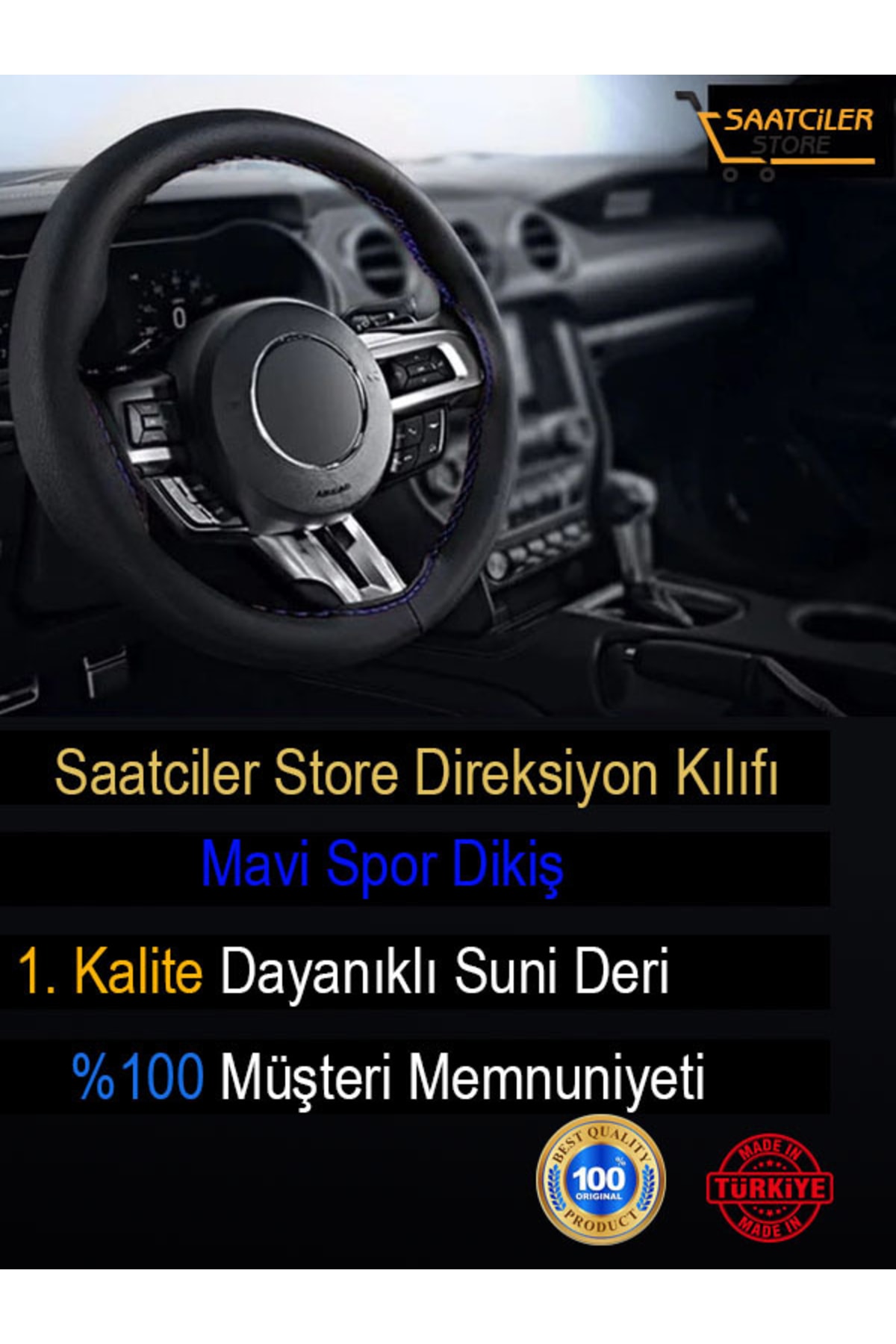 Mavi Spor Dikişli Dikmeli Deri Direksiyon Kılıfı.