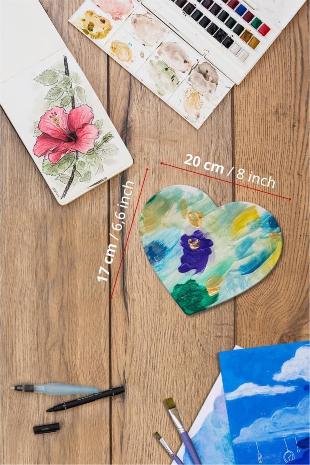 sanatınızı icra edeceğiniz her yerde size eşsiz bir çalışma yüzeyi sunacaktır. Ürün içerisinde 6 adet 20 cm kalp pres kompozit tuval mevcuttur. Ürün Bilgisi: Ebat 20 cm Tuval Kalınlığı 2,5 mm Bir yüzeyi 310 gr. özel profesyonel canvas (tuvalbezi), diğer yüzeyi 300 gr A. Bristol ile arasında suya dayanıklı ithal mukavva kullanılarak özel reçineler ile preslenmiştir. Yağlı boya, sulu boya, guaj boya, akrilik boya,kuru boya, pastel boya, kolay transfer, dekupaj kağıdı, rölyef pasta ve stencil çalışmaları için idealdir. Mevcut Ebatlar: 9x17, 10x10, 10x20, 15x15, 16x17, 17x24, 17x33, 20x20,20x30, 20x40, 25x35 ve 30x30 cm Çıtalı (Şaseli) tuval değildir. Preslenmiş profesyonel Tuval Kompozit’ tir.