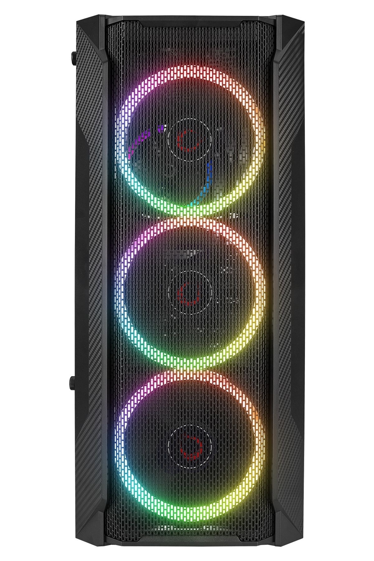 6 fanlı RGB kasa tasarımı bilgisayarlara güçlü ve etkileyici bir görünüm kazandırırken renkli ışıklandırmayla dikkat çeker.