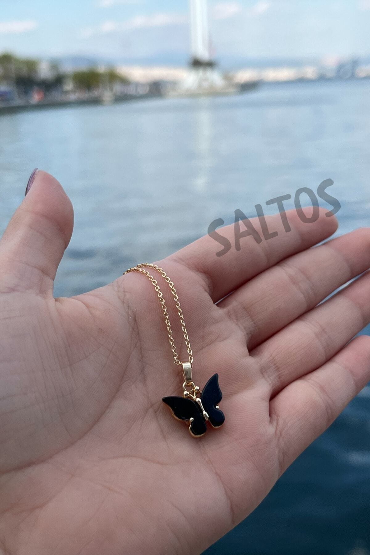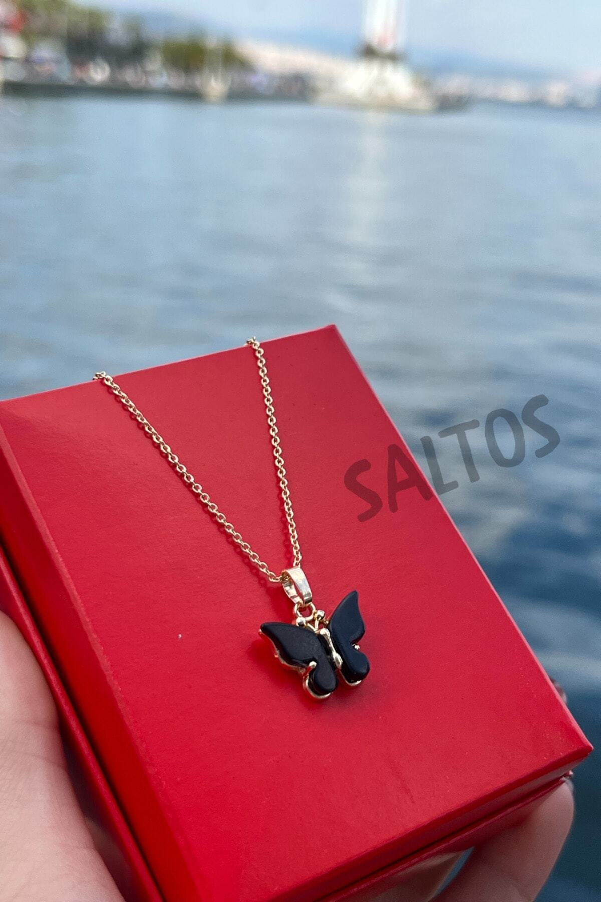 Kolyemiz ve küpe çiftimiz siyah kelebekli ve gold renkli şık bir görünüme sahiptir.