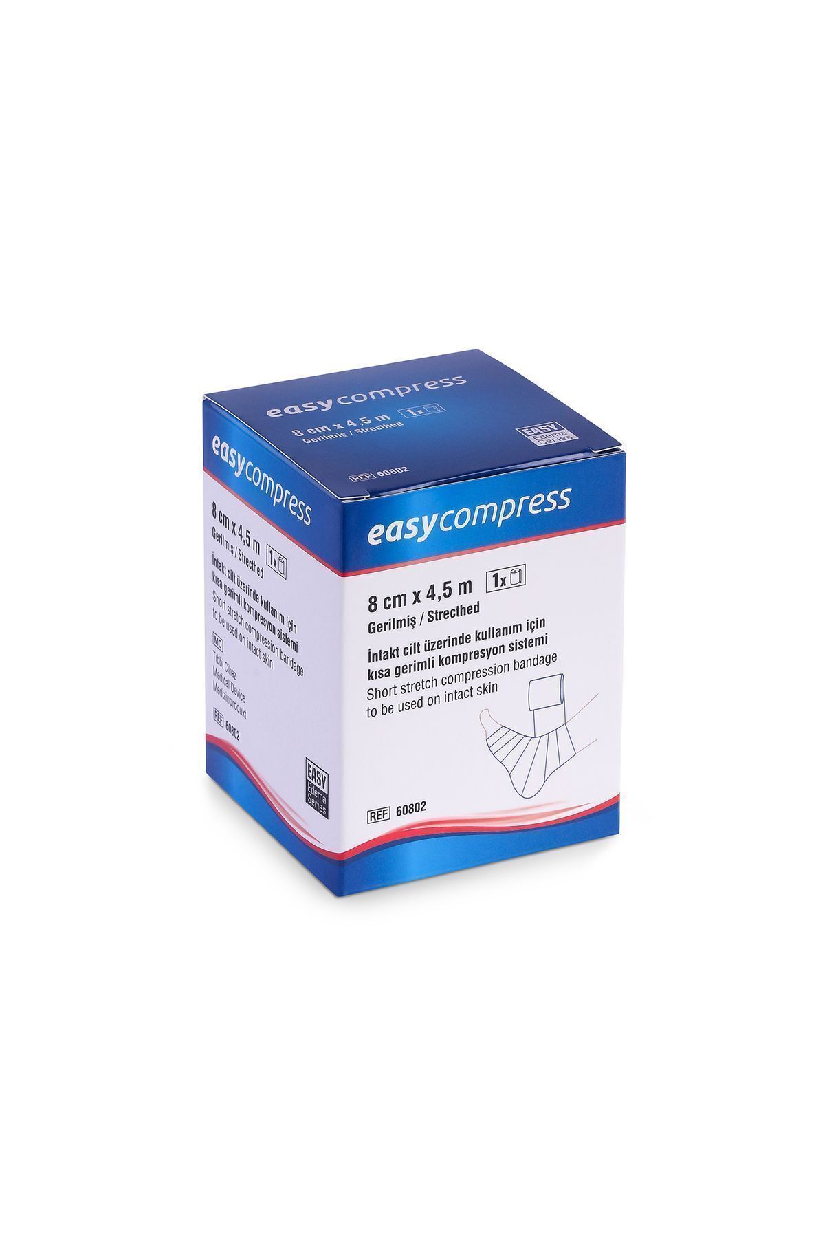 8cmx4,5m Kısa Germe Bandajı Easycompress %100 pamuktan imal edilmiş kısa germe bandajıdır.