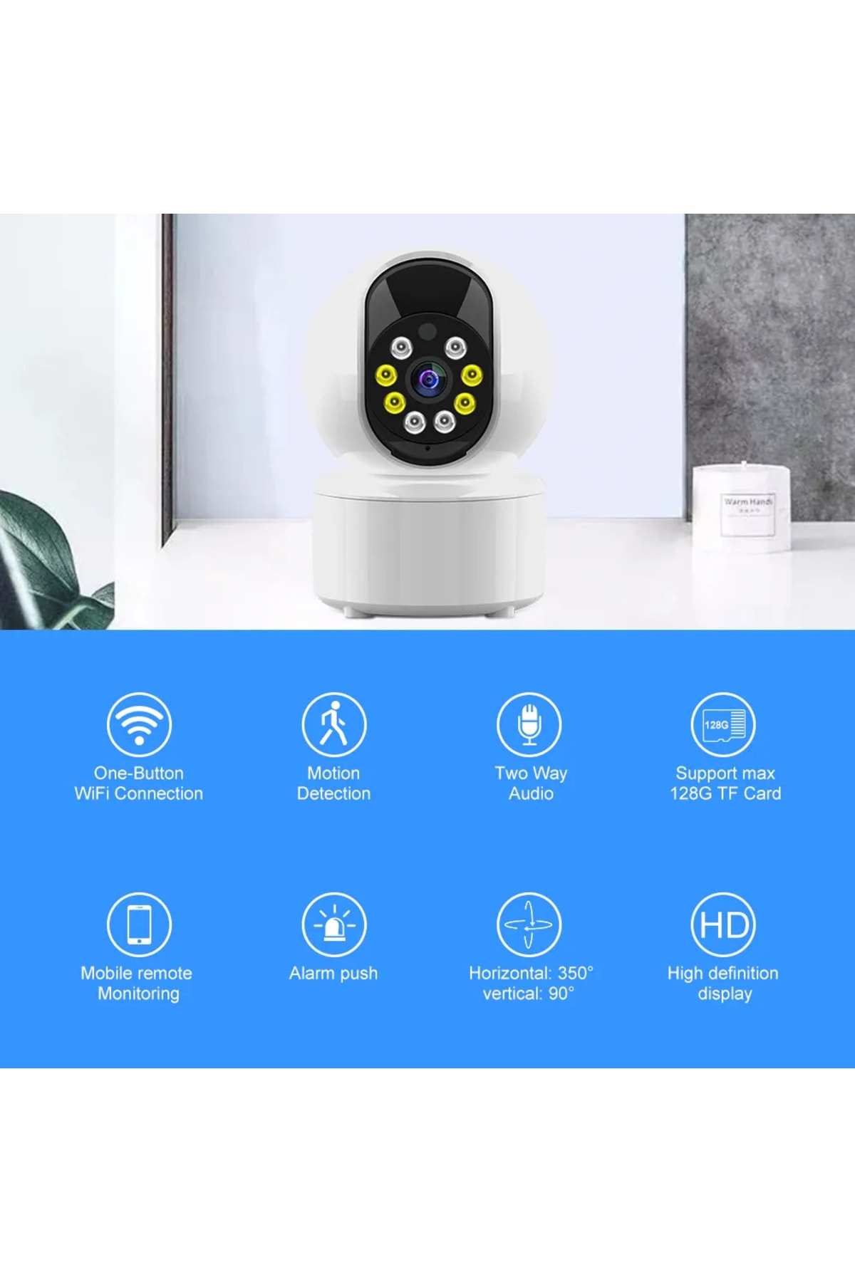 - 360° hareketli görüş açısı ile her köşeyi görebilir, evinizin her noktasını izleyebilirsiniz