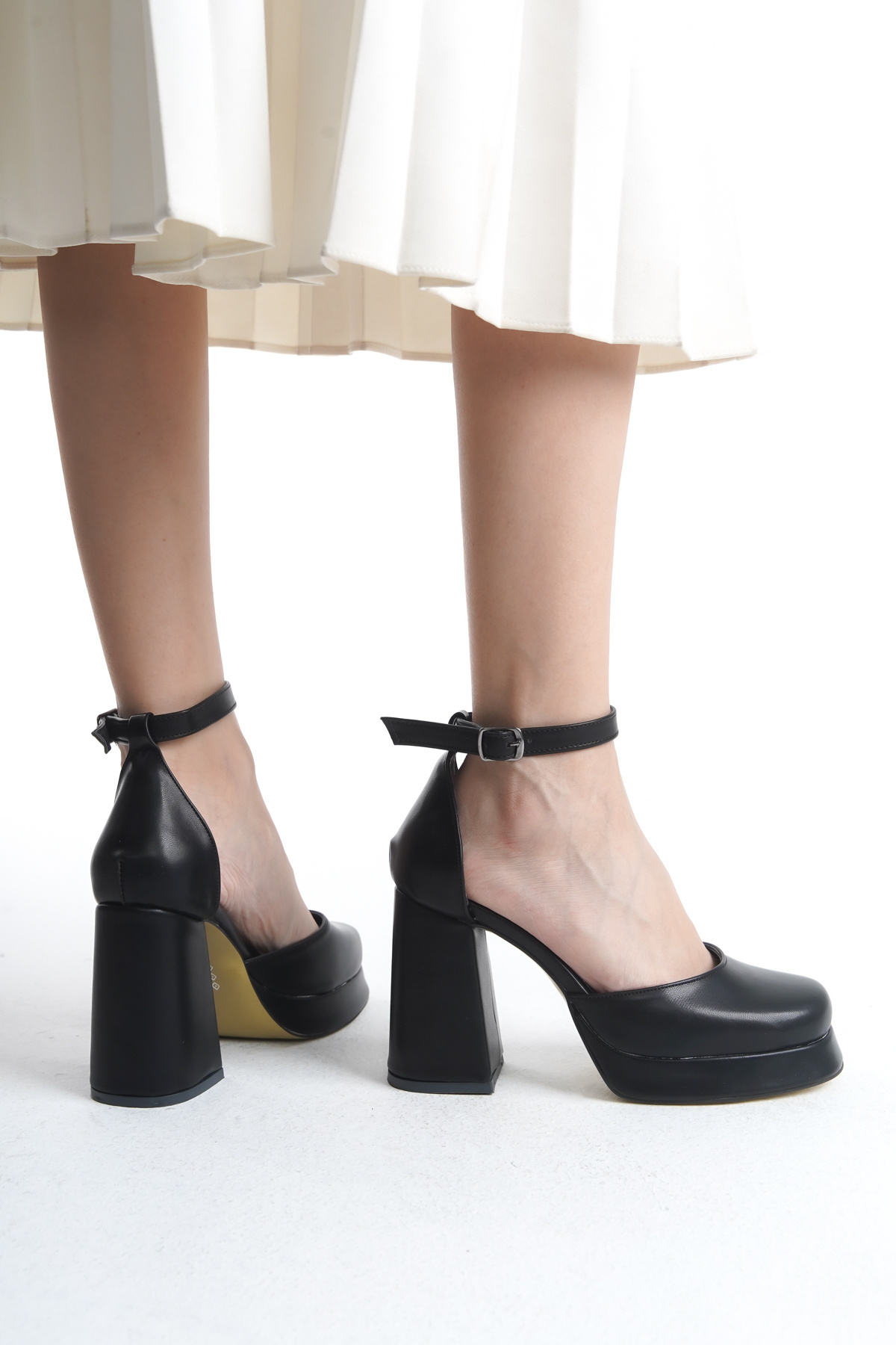 Kalın topuklu yapısı sayesinde konforlu bir yürüyüş deneyimi yaşatırken, kısa topuk boyu (1