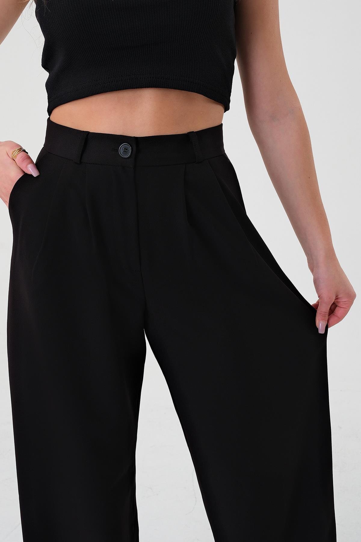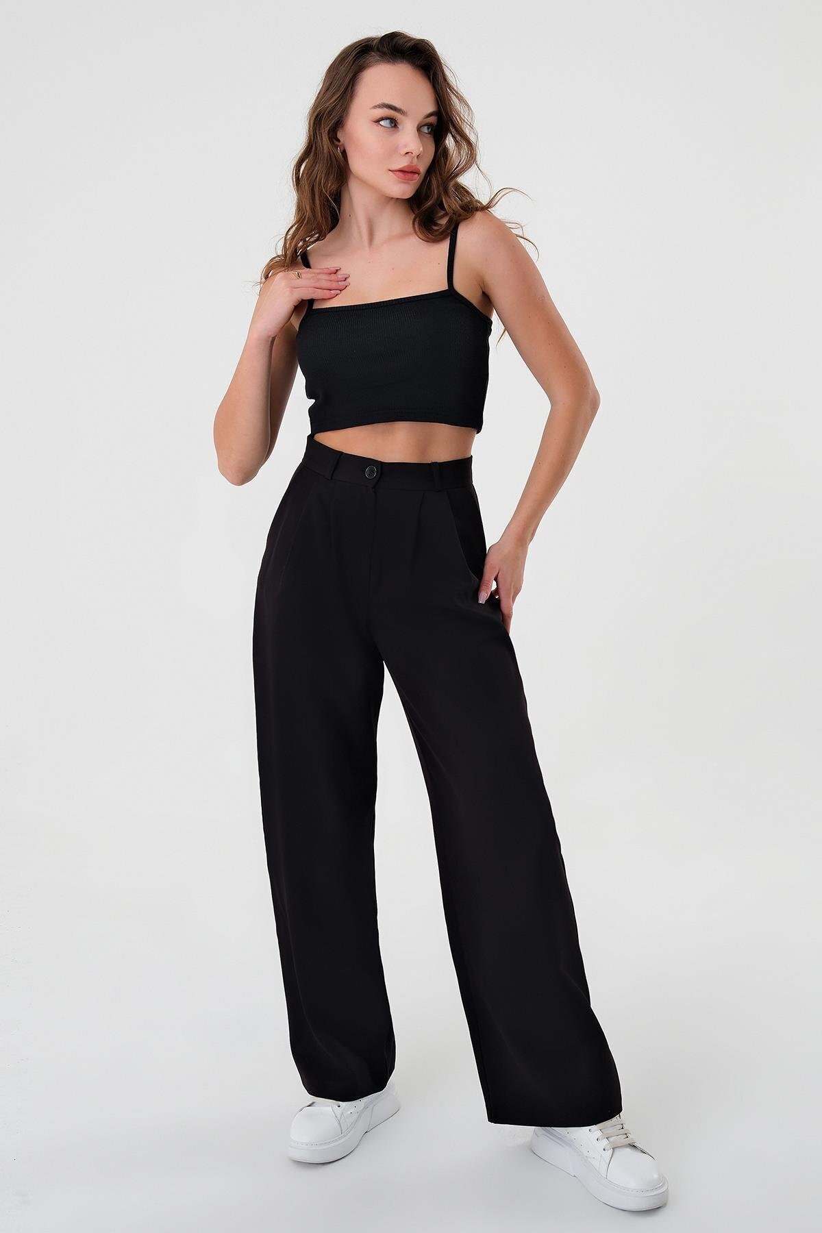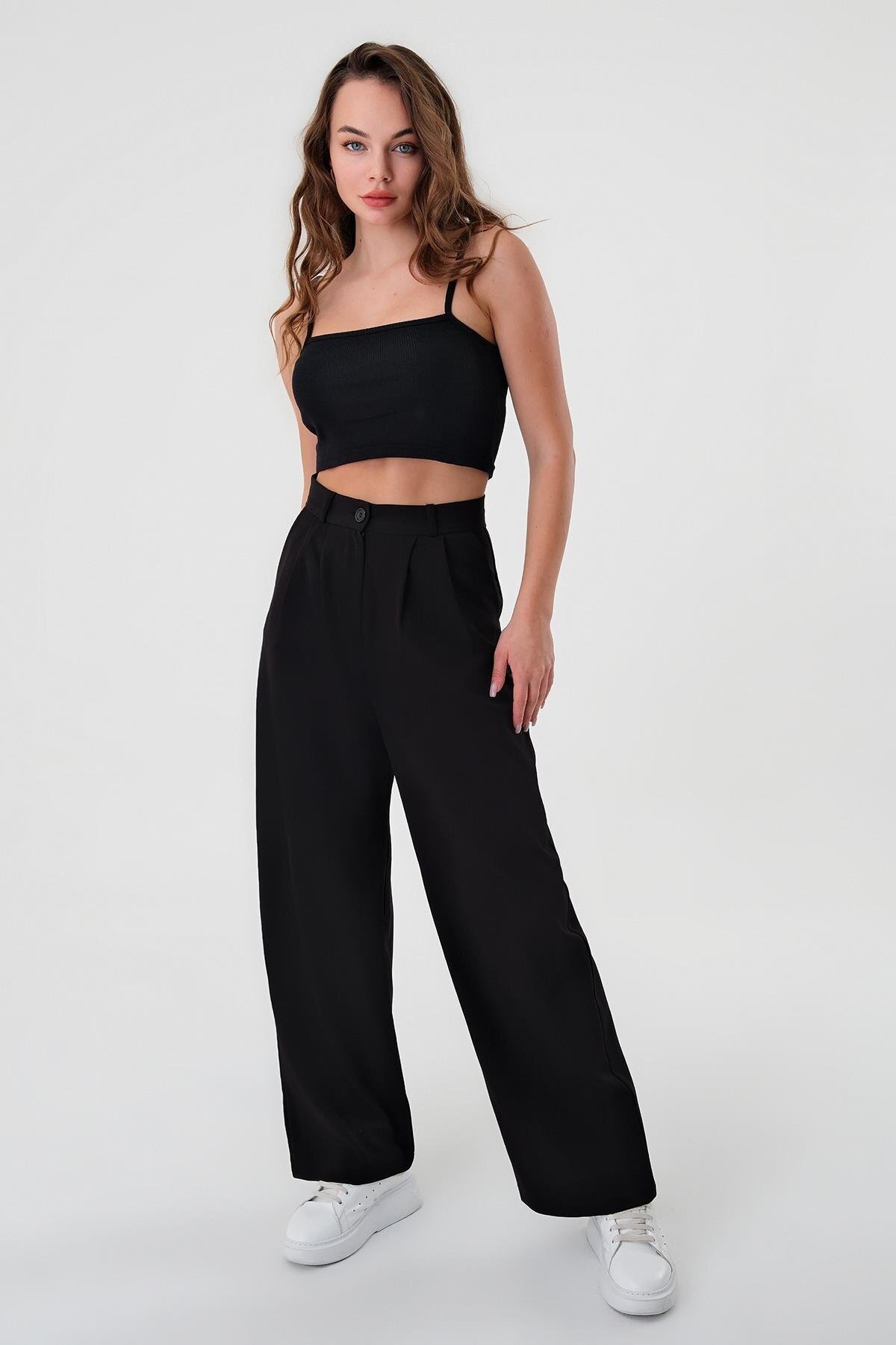Kadın Siyah Yüksek Bel Palazzo Pantolon