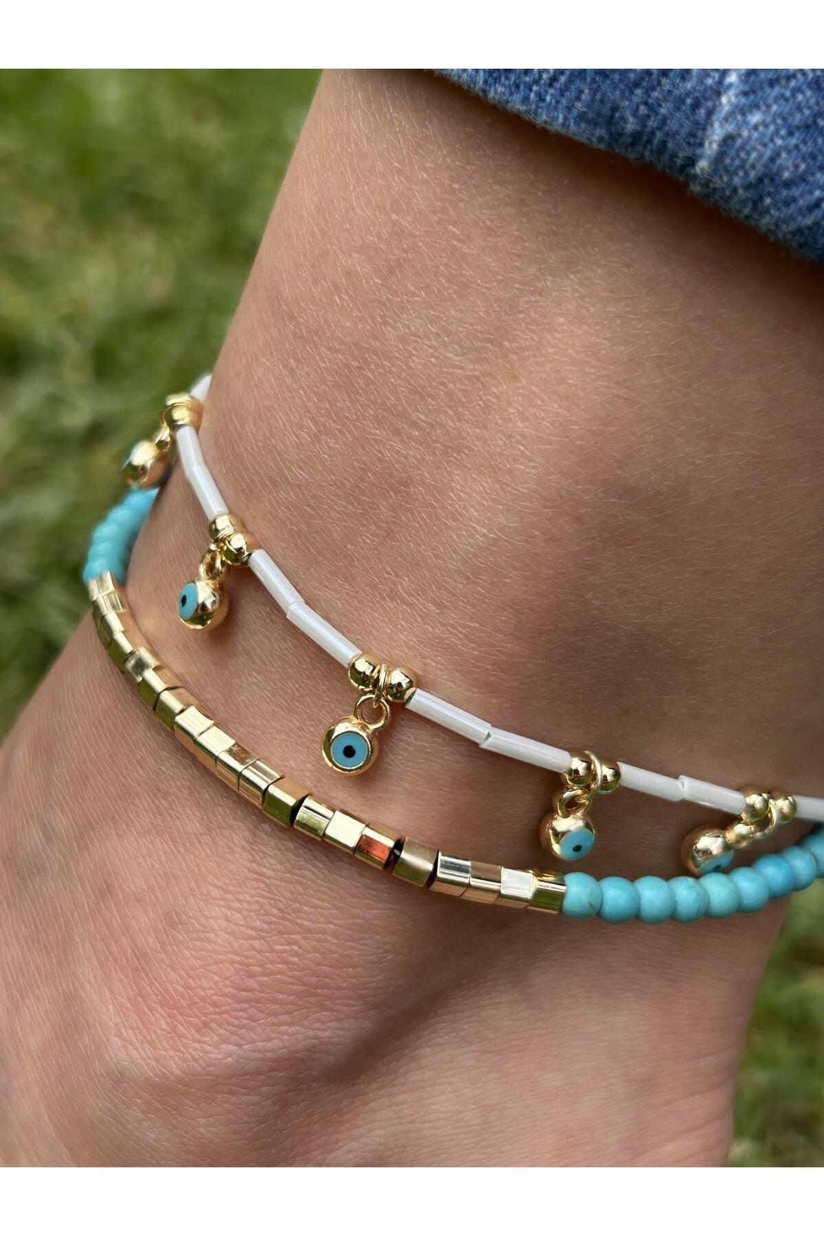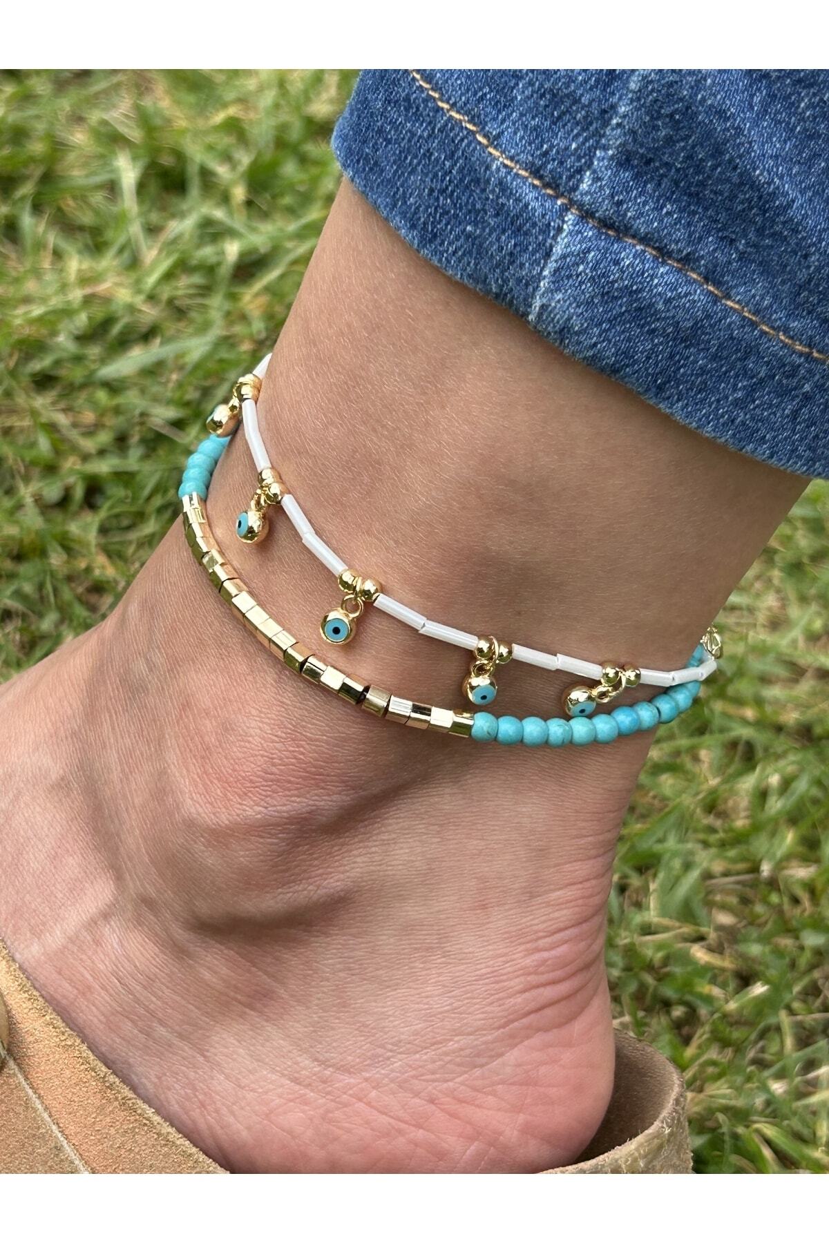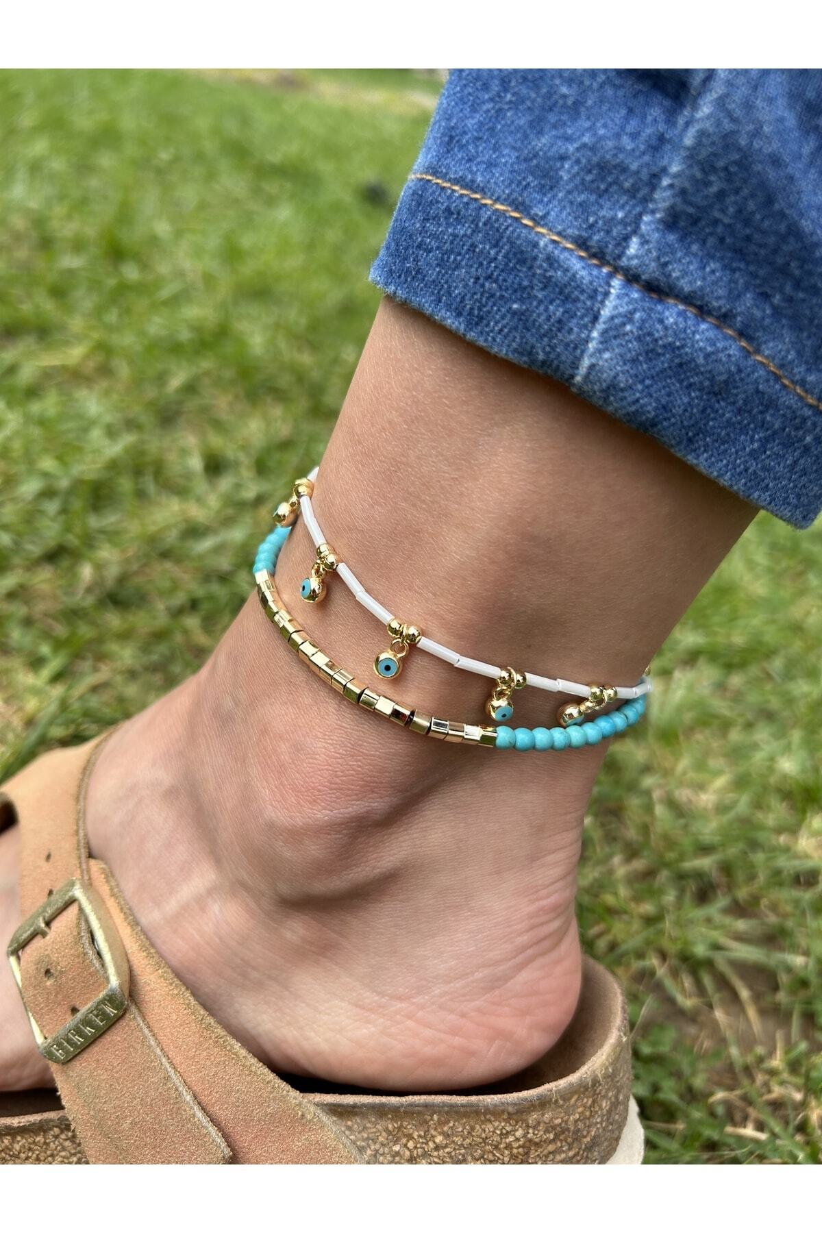 Zarif tasarımıyla dikkat çeken boncuk halhallar, şıklığınızı tamamlamak için ideal bir aksesuardır