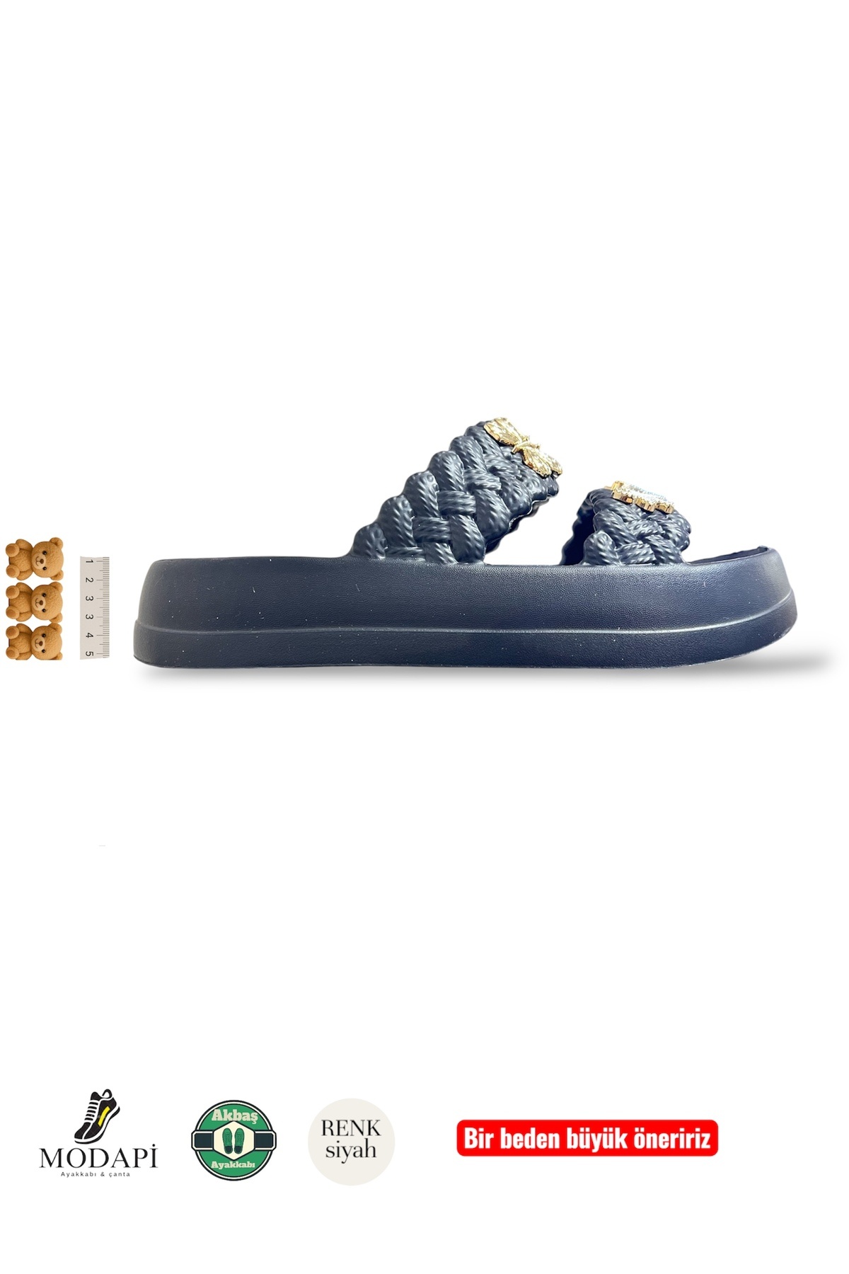İş ortamında konfor ve şıklığı bir arada sunan, düz desenli ve ortopedik tabanlı tasarımıyla dikkat çeken terlik