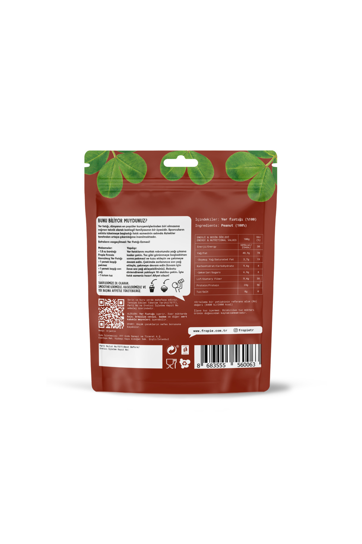 her zaman, her ürünün en kalitesini ve en lezzetlisini sunmak demek. Fropie Fırında Yağsız Kavrulmuş Yer Fıstığı Arjantin’den geliyor. Üstelik bu sağlık deposu tuz ilavesiz, katkısız ve koruyucusuz. Fropie ile Leziz Geçen Anlar Lezzetinden asla vazgeçemeyeceğin, vitamin ve mineral içeriğiyle sağlığına gözü gibi bakan Fropie Fırında Yağsız Kavrulmuş Yer Fıstığı tıpkı birlikte hep çok iyi zaman geçirdiğin can dostun gibi. İçindekiler: Yer fıstığı (%100) - Glutensiz - Yüksek Lif - Tuz İlavesiz - Bitkisel Protein Kaynağı (21 g) - Katkısız & Koruyucusuz