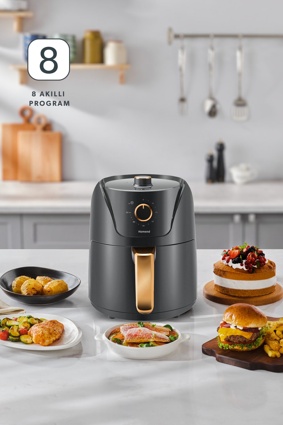 Homend Airfryday 2505H 8 Farklı Programlı, 4,3 Litre Airfryer AntrasitLezzetli bir yemek için yağı fazla kullanmanıza gerek yok.