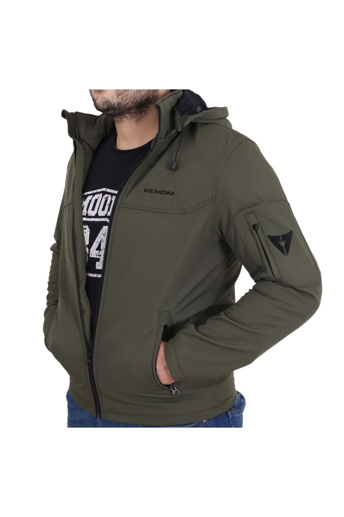 Motosiklet sürüşlerinizde soğuk havalarda sizi sıcak tutacak Jaws softshell korumalı motosiklet ceketi, haki yeşili rengiyle şıklığı ve konforu bir arada sunar