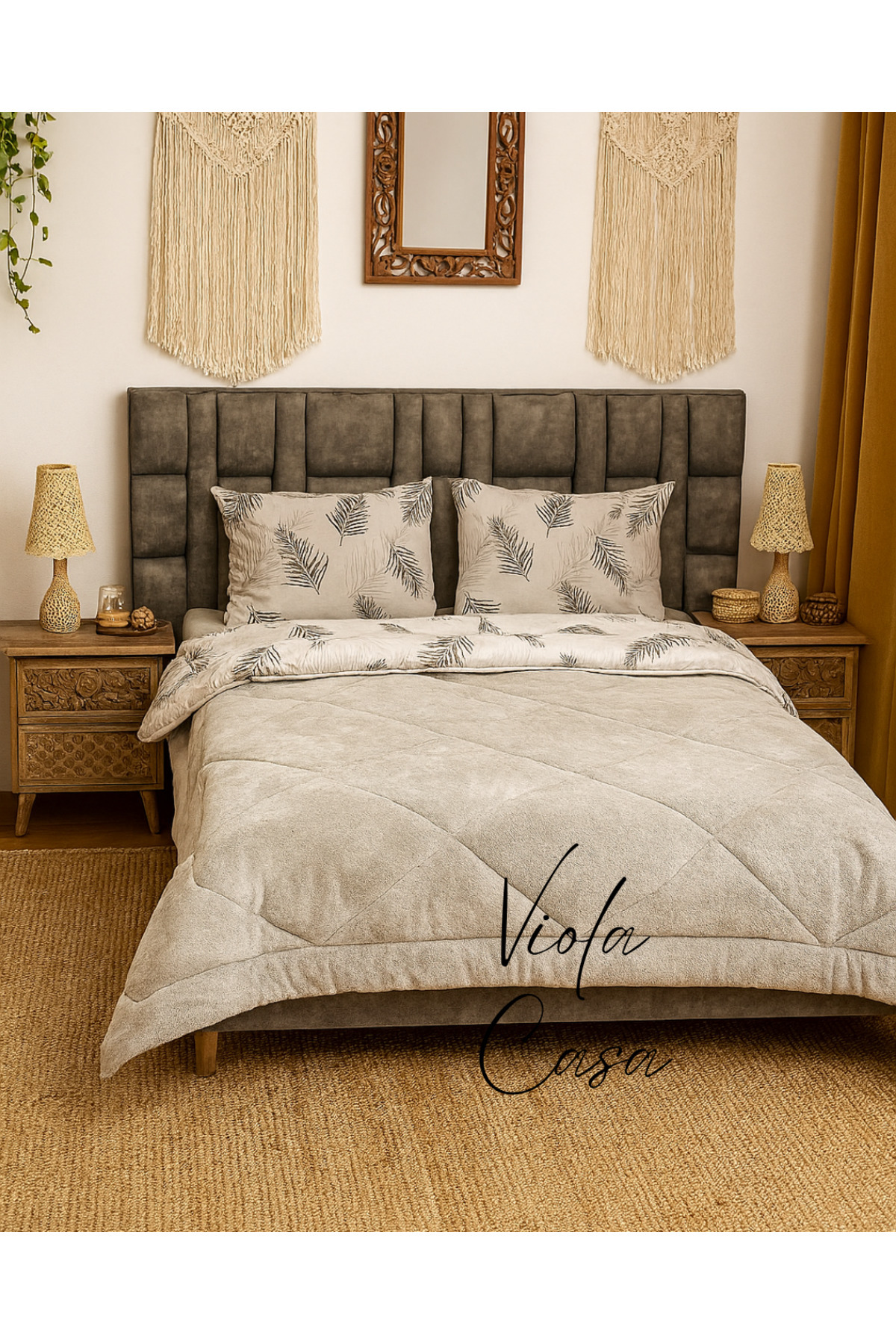 Çift Taraflı Welsoft Yorgan Seti Çift Kişilik Pudra Tüy