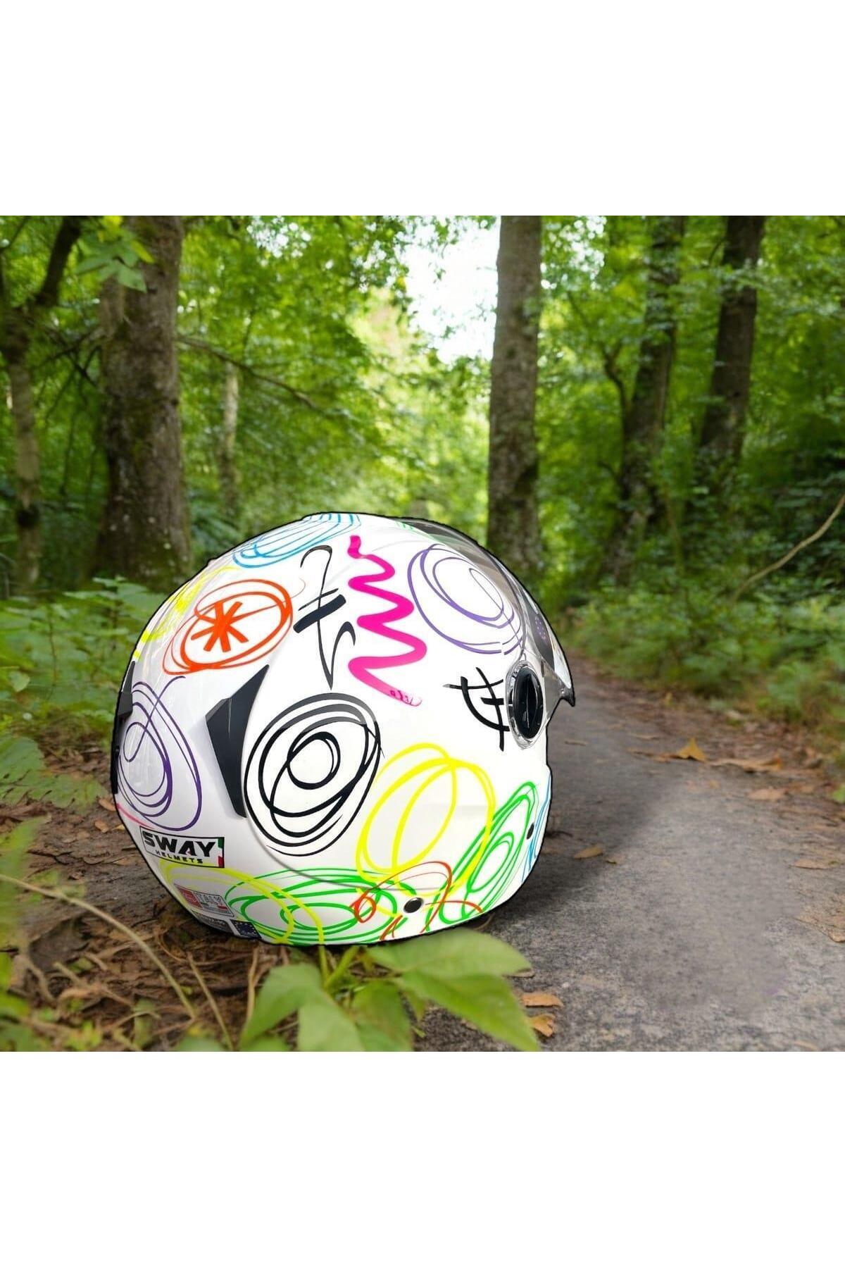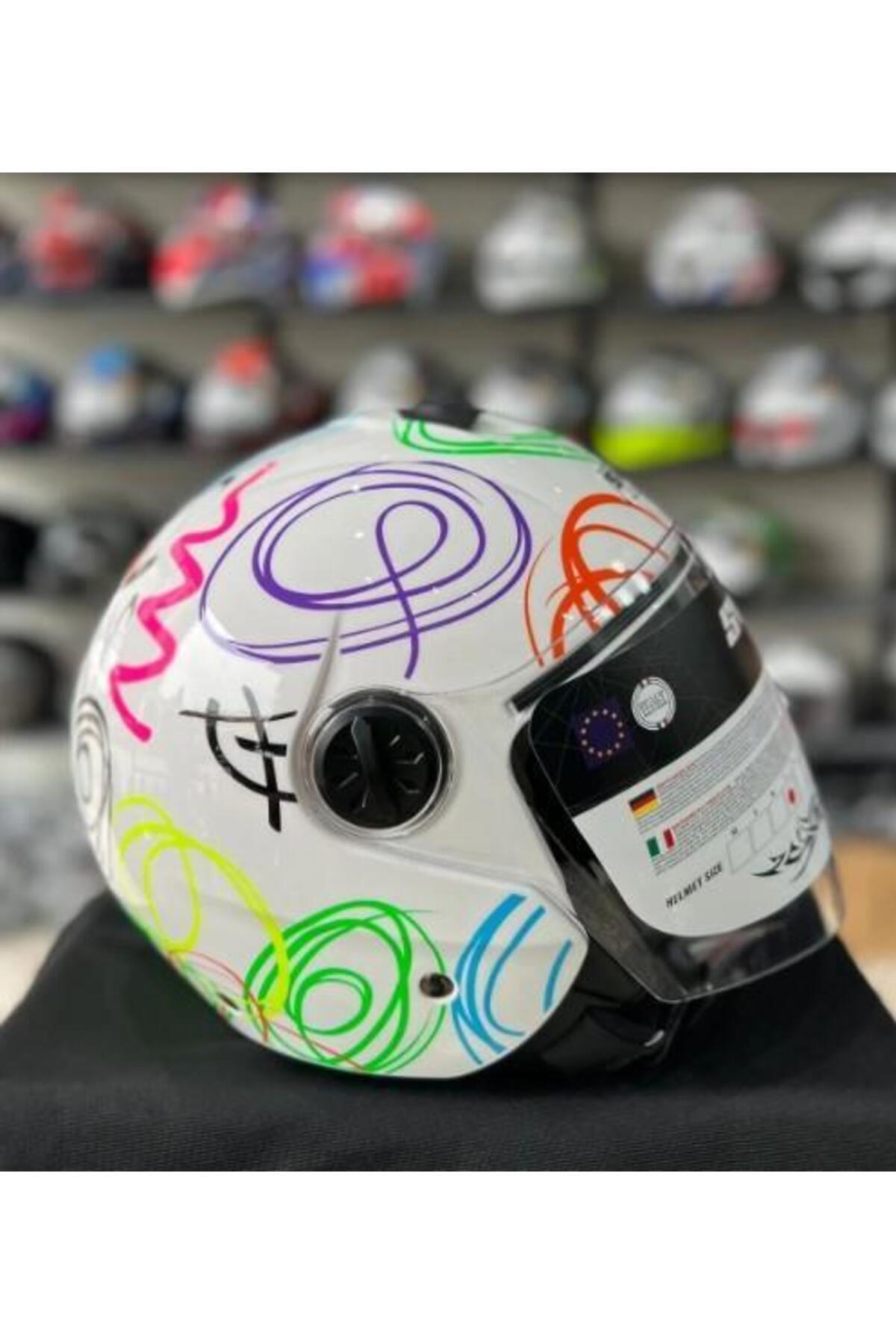 Sway 715 Şeffaf Vizörlü Yarım Motosiklet Scooter Kaskı S Beden White Flower ÜRÜN ÖZELLİKLERİ ECE R22.05 Güvenlik Sertifikası GR 1000+-50 ABS Materyal Güçlendirilmiş çene kayışı Kanallı EPS Tepe ve arka havalandırma Çizilmeye dayanıklı Çıkarılabilir ve yıkanabilir iç pedler
