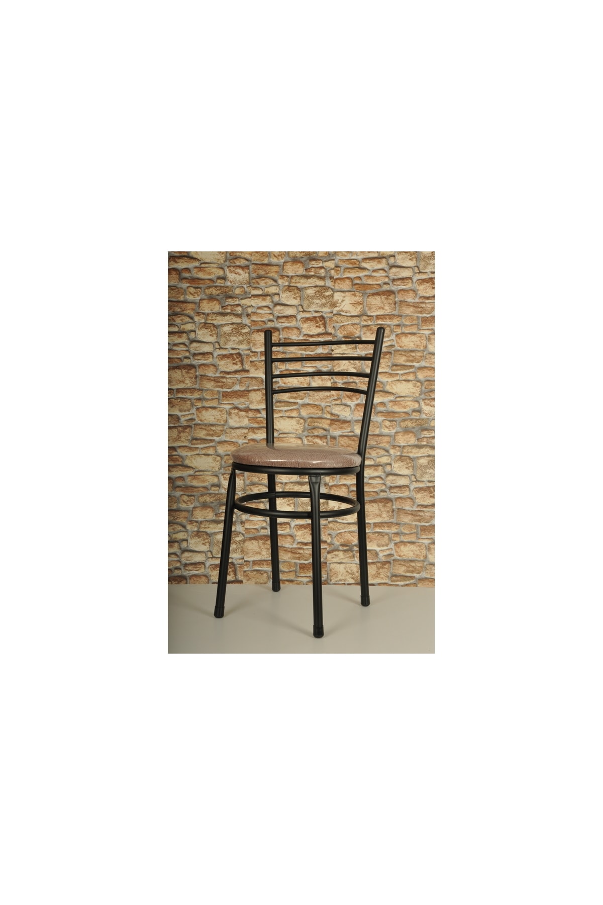 2 Adet Siyah Profil Kahverengi Kumaş Mutfak Sandalyesi Balkon Bahçe Sandalyesi