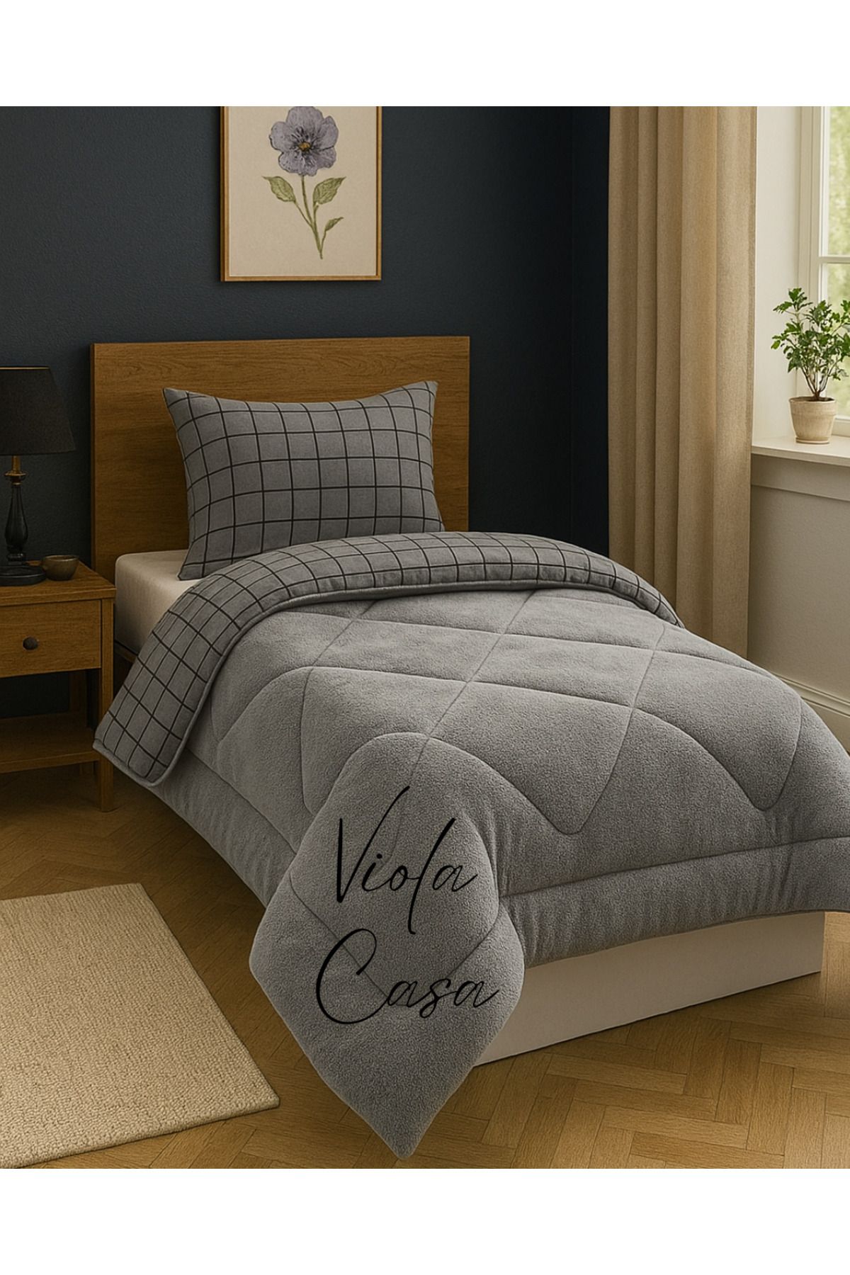 Tek Kişilik Çift Taraflı Welsoft Yorgan Füme Kare