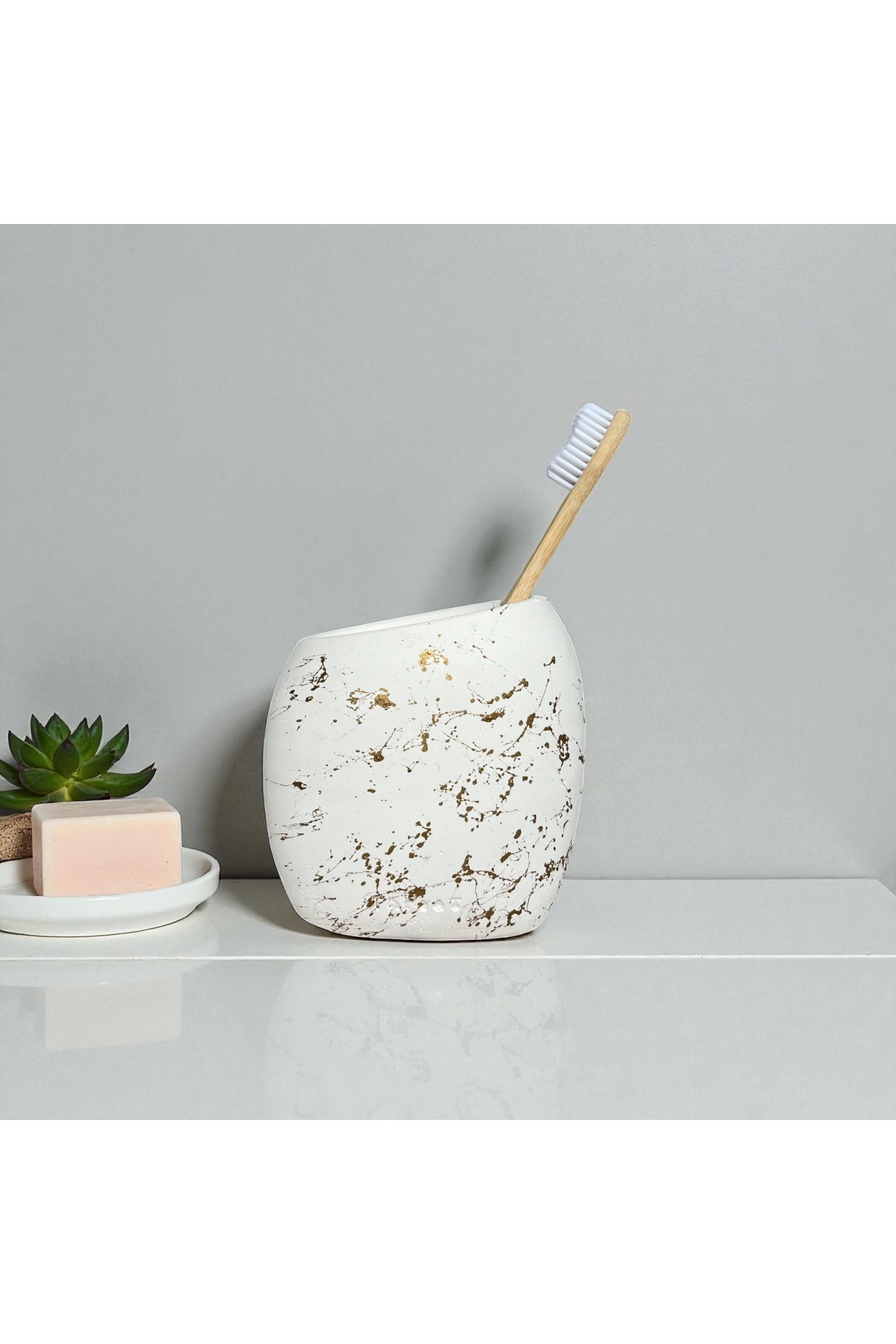 Modern ve şık tasarımıyla banyonuza estetik bir dokunuş katan beton diş fırçalığımız, dayanıklılığı ve uzun ömürlü kullanımı ile ön plana çıkar