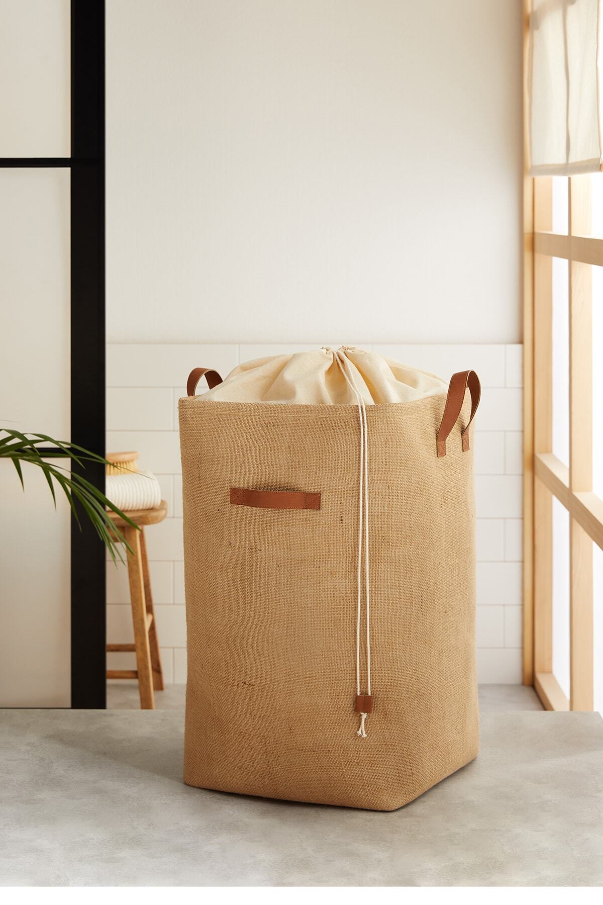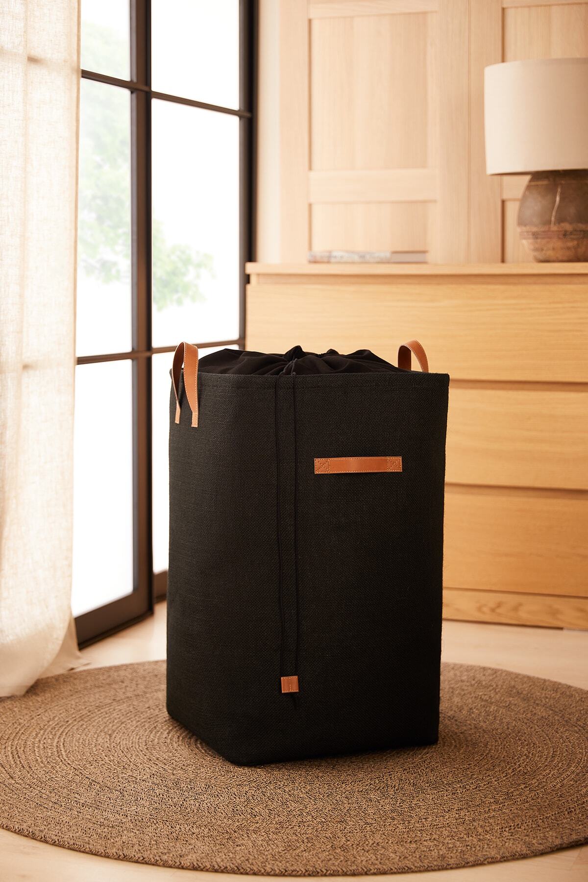 Pamuklu kumaştan üretilmiş çamaşır sepeti, farklı tasarımıyla çamaşır yıkama ve düzenleme alanlarında kullanıma uygundur.
