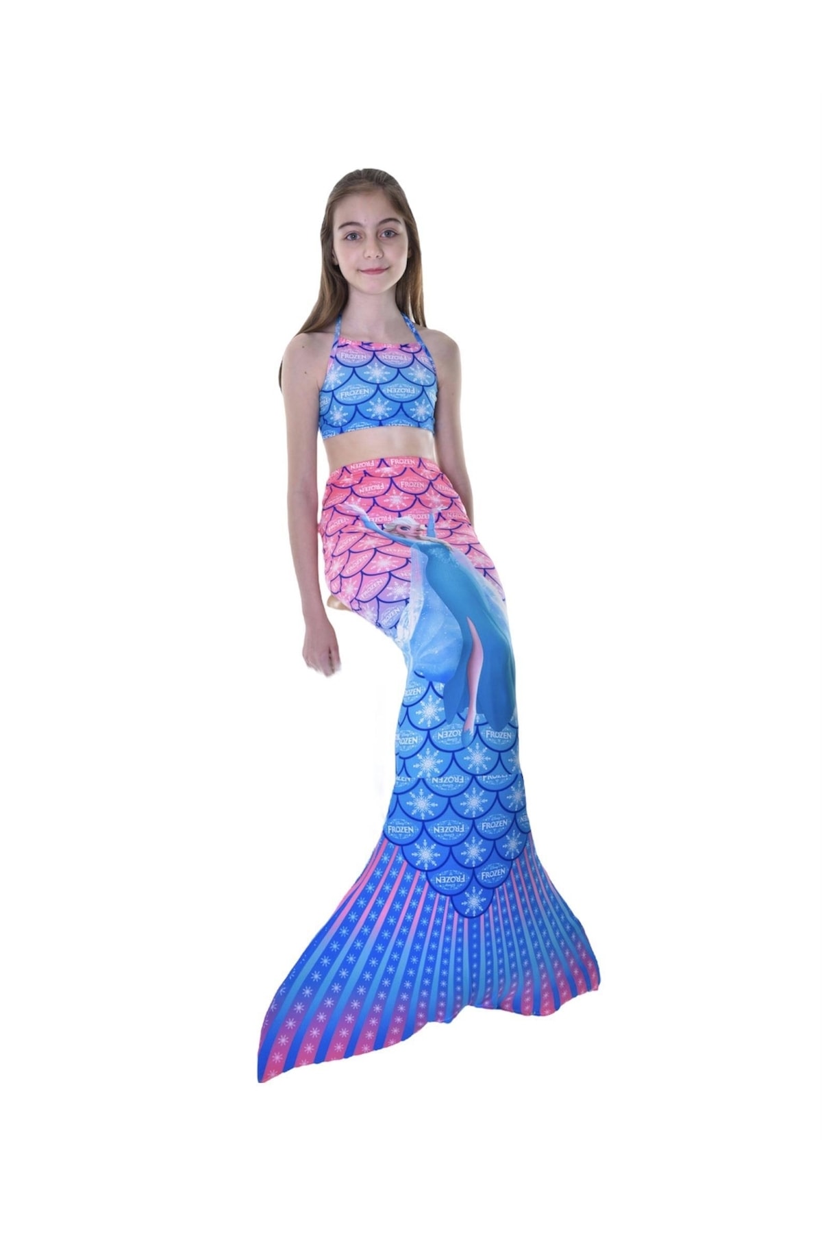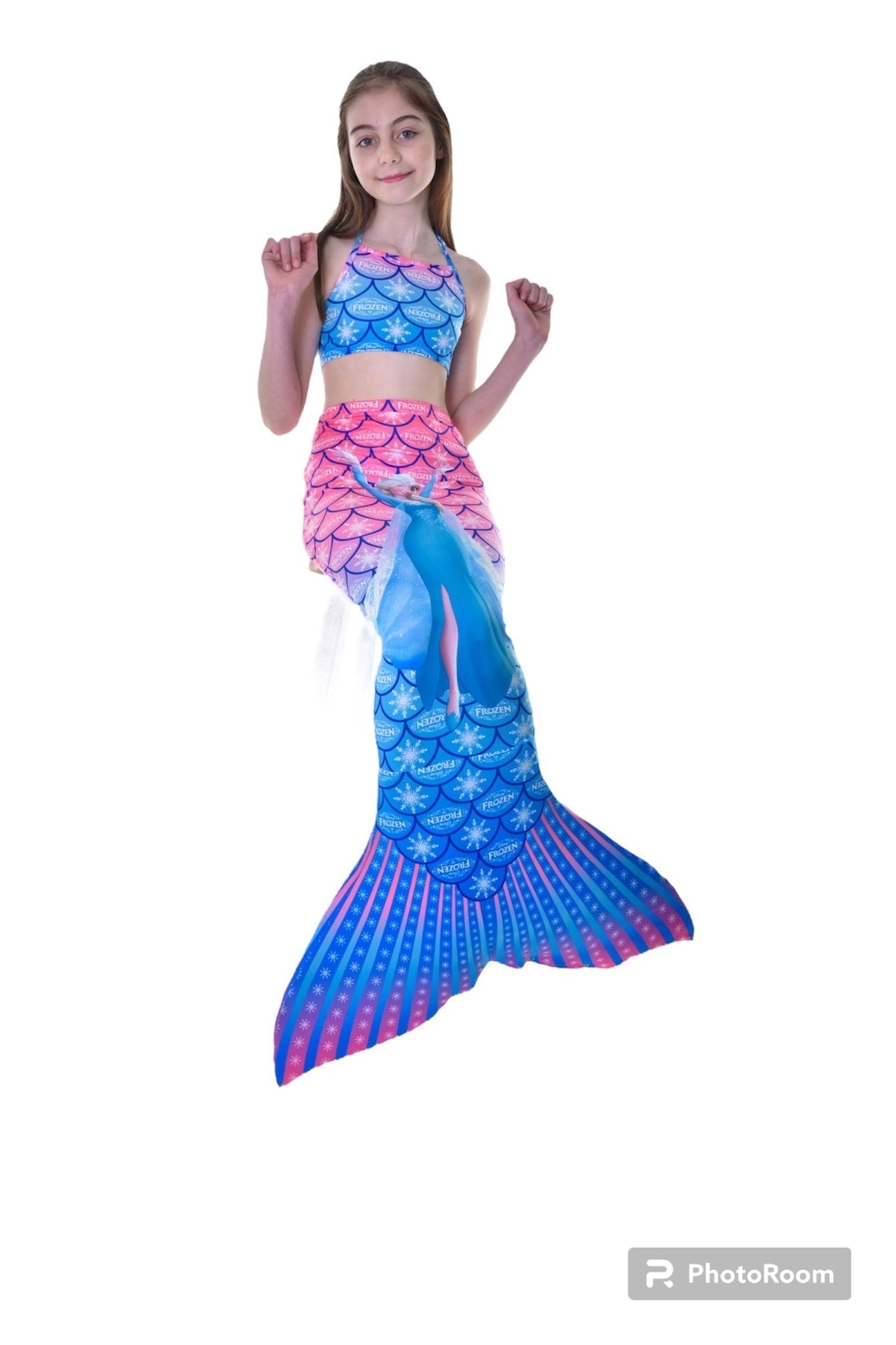 Kız Çocuk Deniz Ve havuz deniz kızı kostüm ve mayosu sevimli tasarımlar ile süslenmiş üçlü Plaj Takımıdır.
