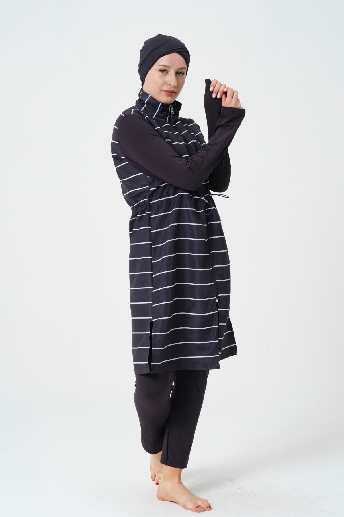 Myfirstsea çizgili tesettür mayo 3 parçadır.