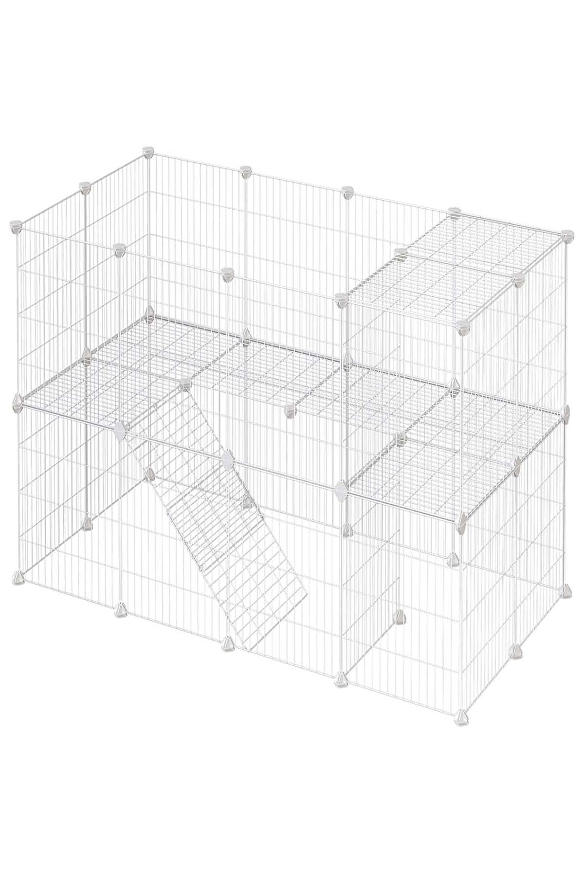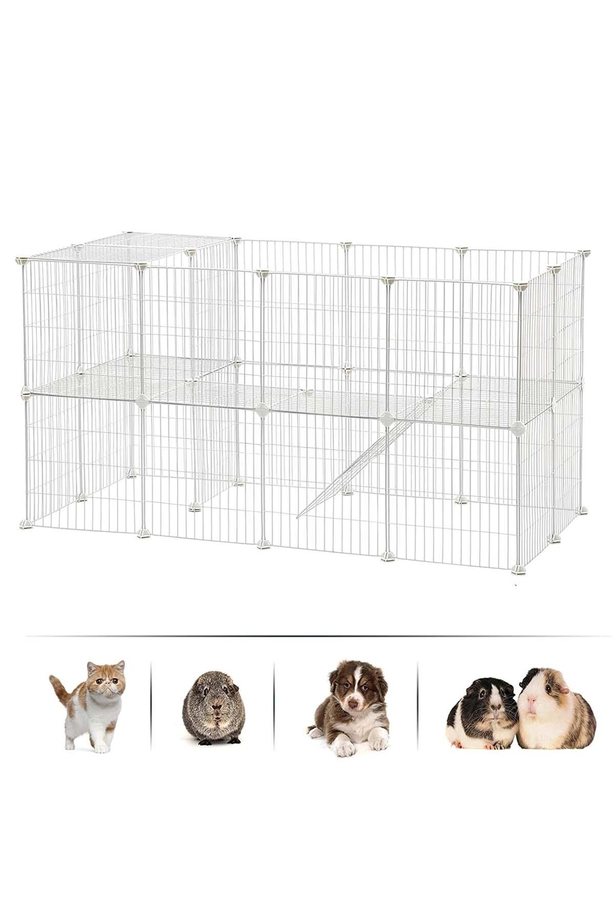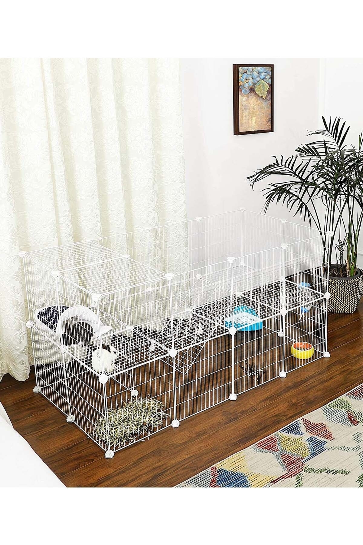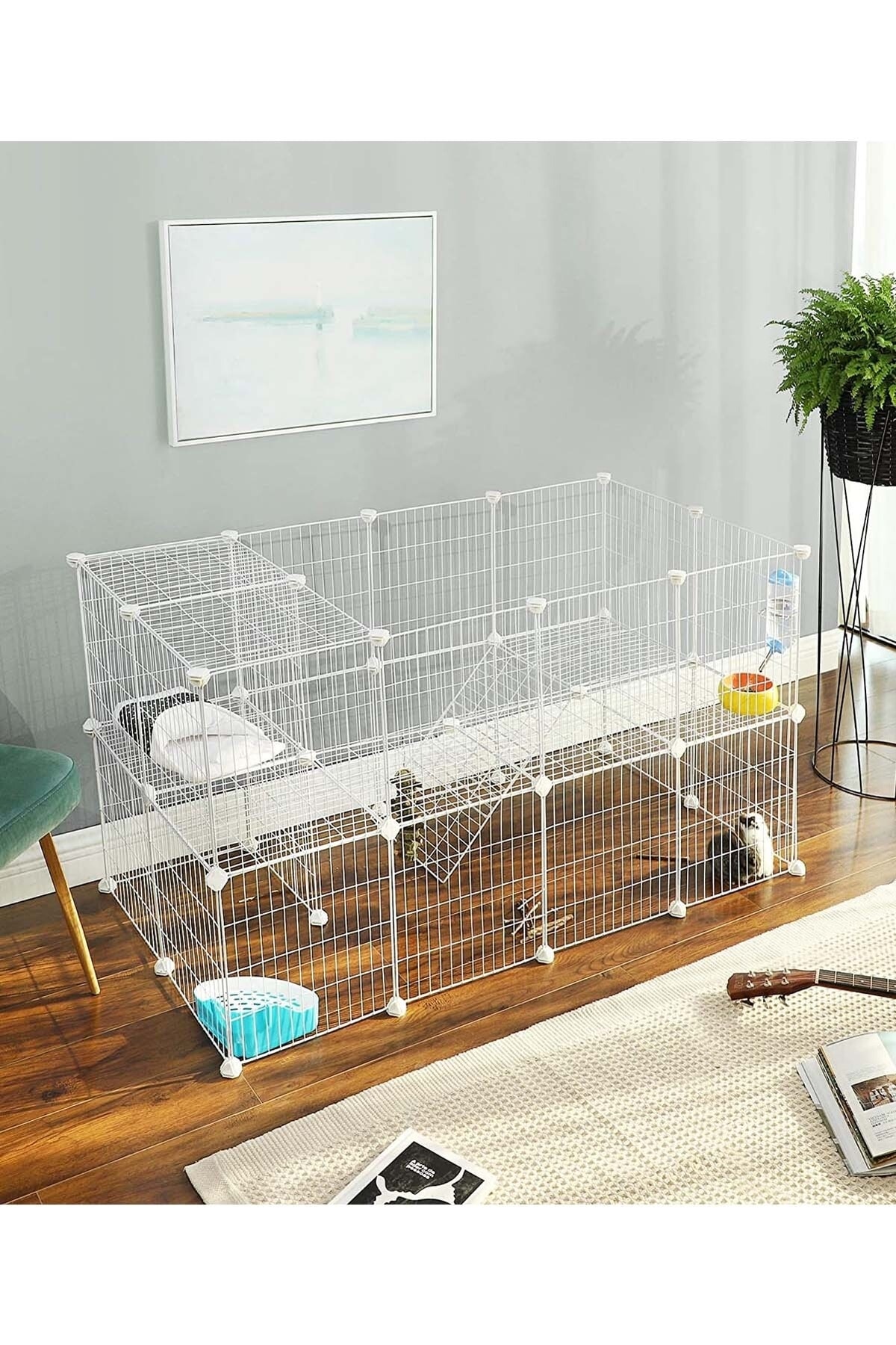 36 Panel Beyaz Renk Evcil Küçük Hayvan Kedi Köpek Kuş Evi Kafesi Oyun Parkı Portatif Metal Tel
