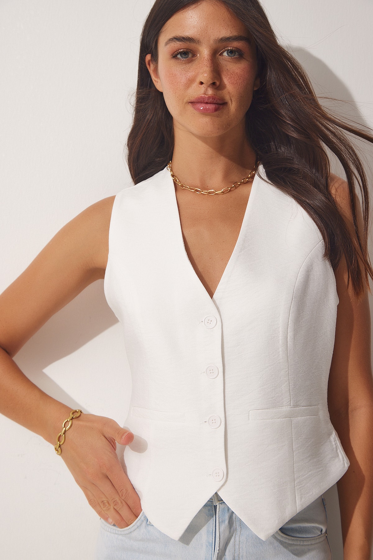 Pratik düğmeli kapama şekliyle kolayca giyilip çıkartılabilir ve farklı stiller yaratma imkanı tanır