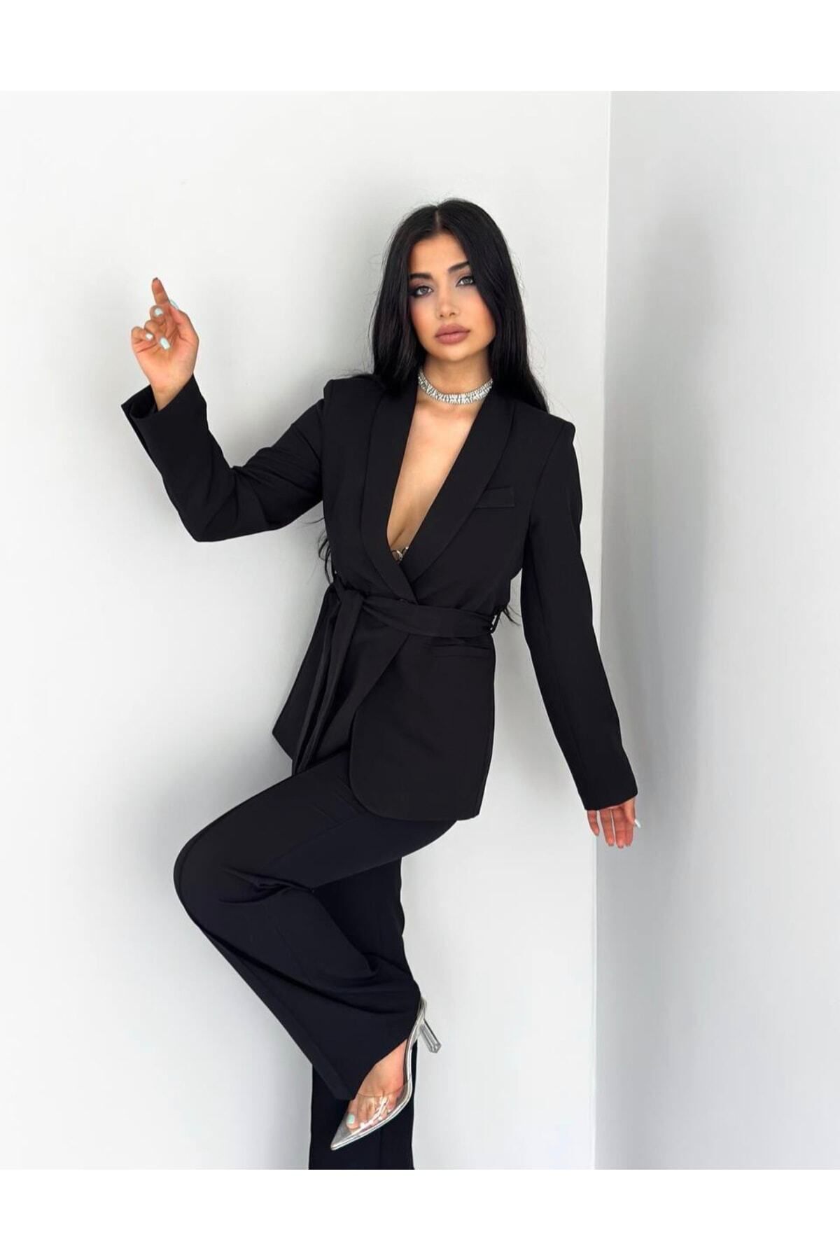 Ceket yaka detayı ile resmiyeti ön plana çıkaran zarif bir görünüm elde edin