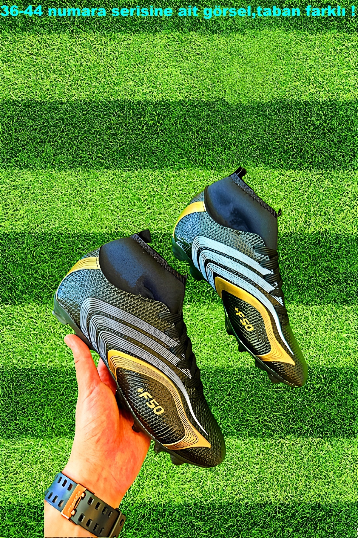 - Renk seçeneği olarak sarının enerjisini taşıyan bu futbol ayakkabısı, sahada dikkat çekici bir görünüm sunar.