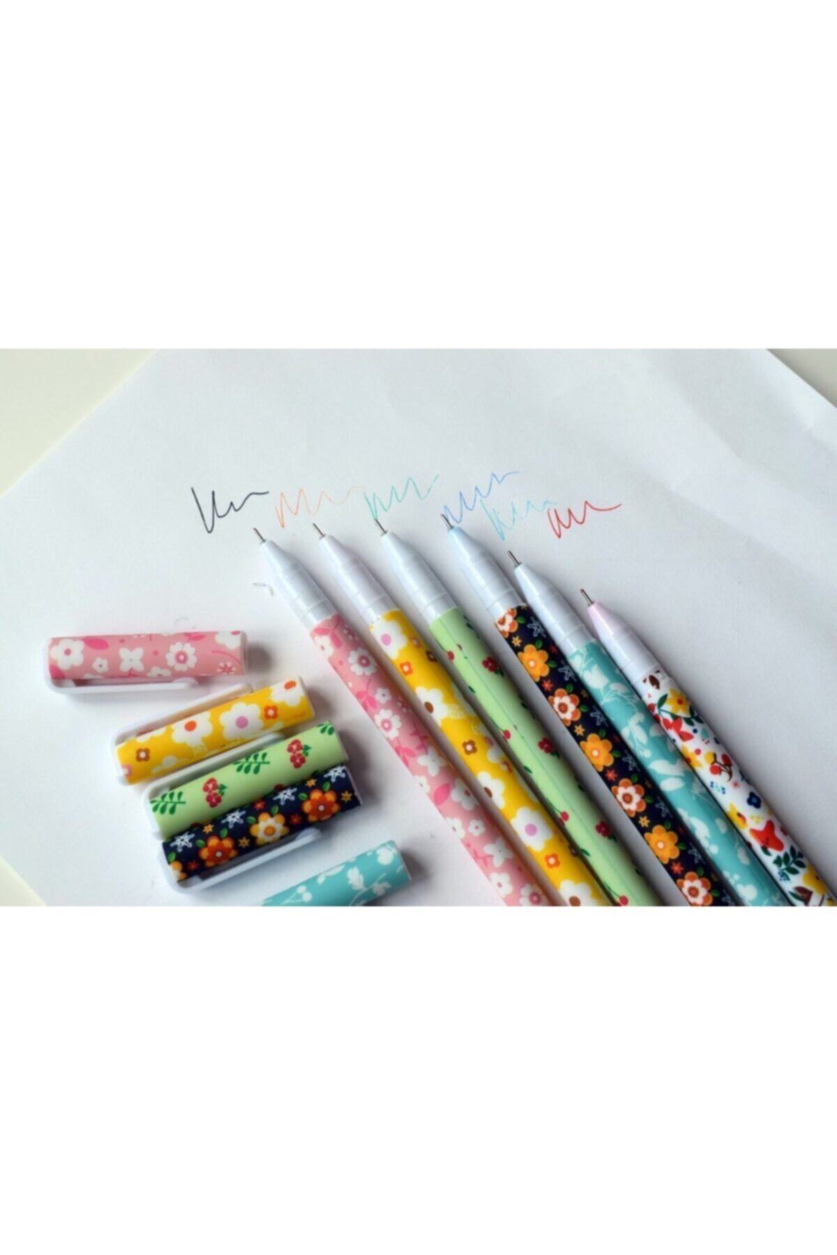 Çiçekli Renkli Kalem Seti 6lı Jel