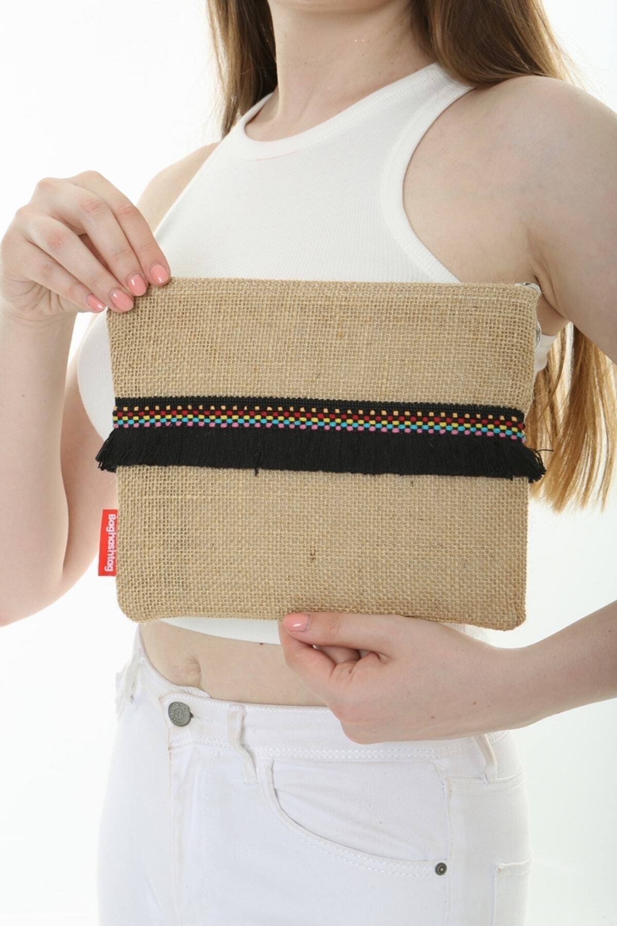 Doğal dokuma kumaş yapısı ile hem dayanıklı hem de şık bir görünüm sunar