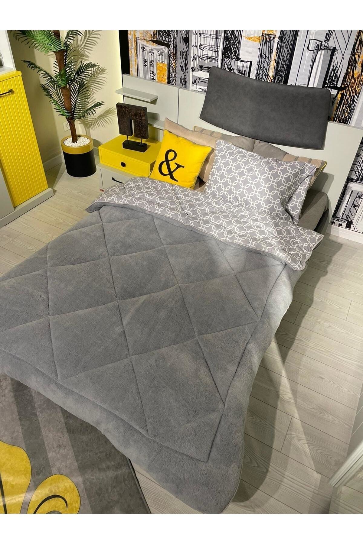 Tek Kişilik Çift Taraflı Welsoft Yorgan Gri Zincir