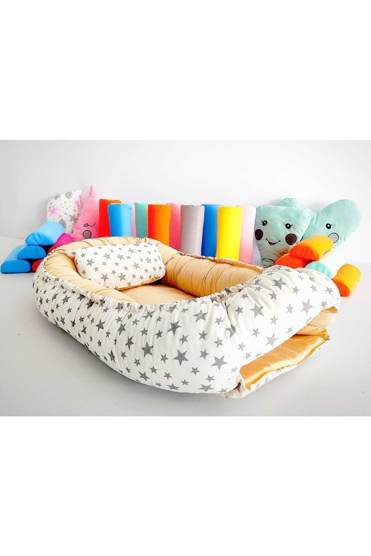 Babynest, Baş Yastığı Ürün Özellikleri Omurga gelişimine uygun özel tasarlanmıştır. %100 Organik Pamuk Lüx Kumaştan üretilmiş, Anti-Bakteriyel ve Anti-Aerjiktir. Fermuarlı iç astara sahip, çamaşır makinesinde yıkanabilir dikim yapılmıştır. 2 Yaşa kadar bebekler için uygun ölçülerdedir. Nem ve Buharı emen sünger ve boncuk elyaf kullanılmıştır. Bebeği terletmez. Ürün Boyutları İçten içe: 70x40 cm Dıştan dışa: 100x60 cm Baş Yastığı: 27x17 cm