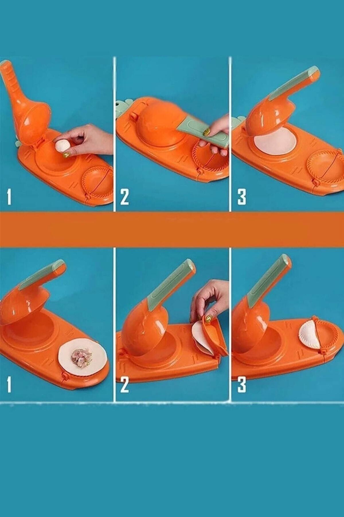 2+1 Pratik Hamur Açıcı Hamur Presleme Mantı Börek Poğaça Hamur Açma ve Ravioli Yapma Kalıbı Hamur bir top haline getirin ve panelin ortasına yerleştirin.