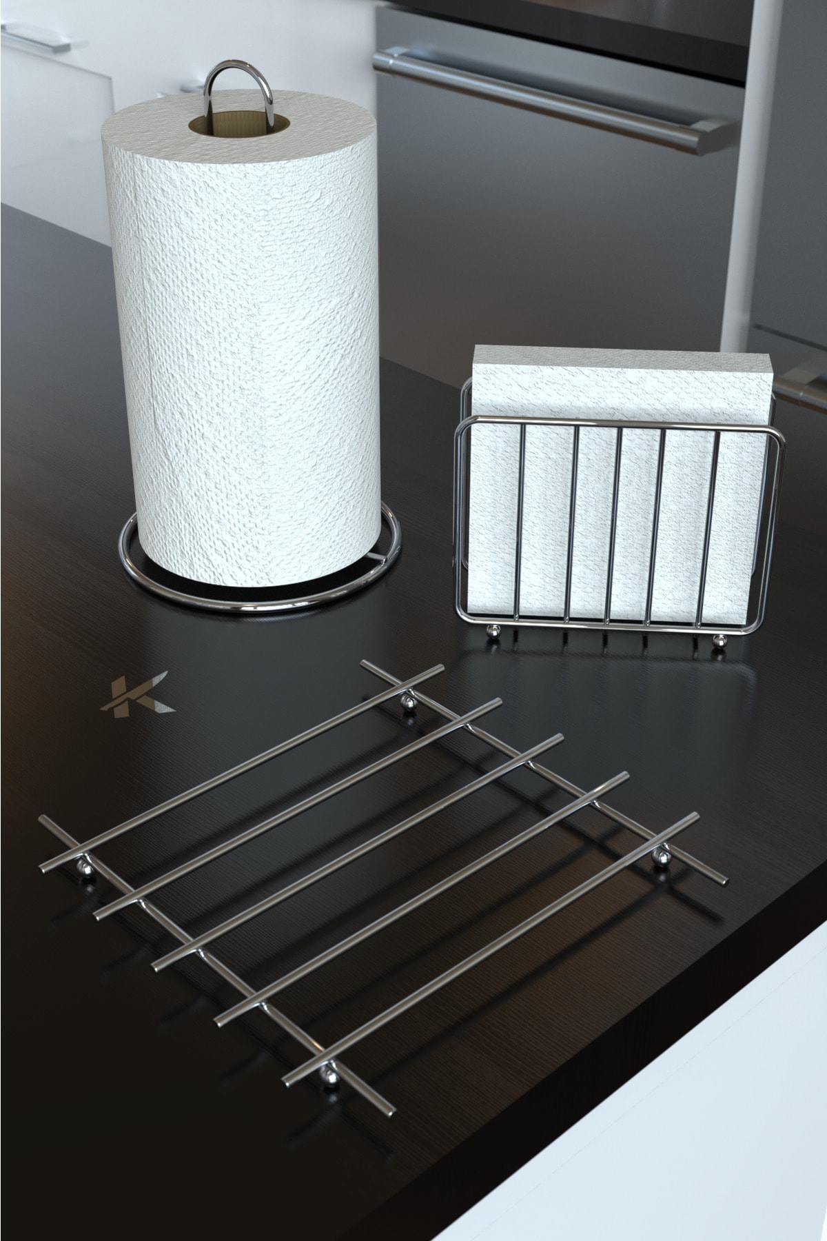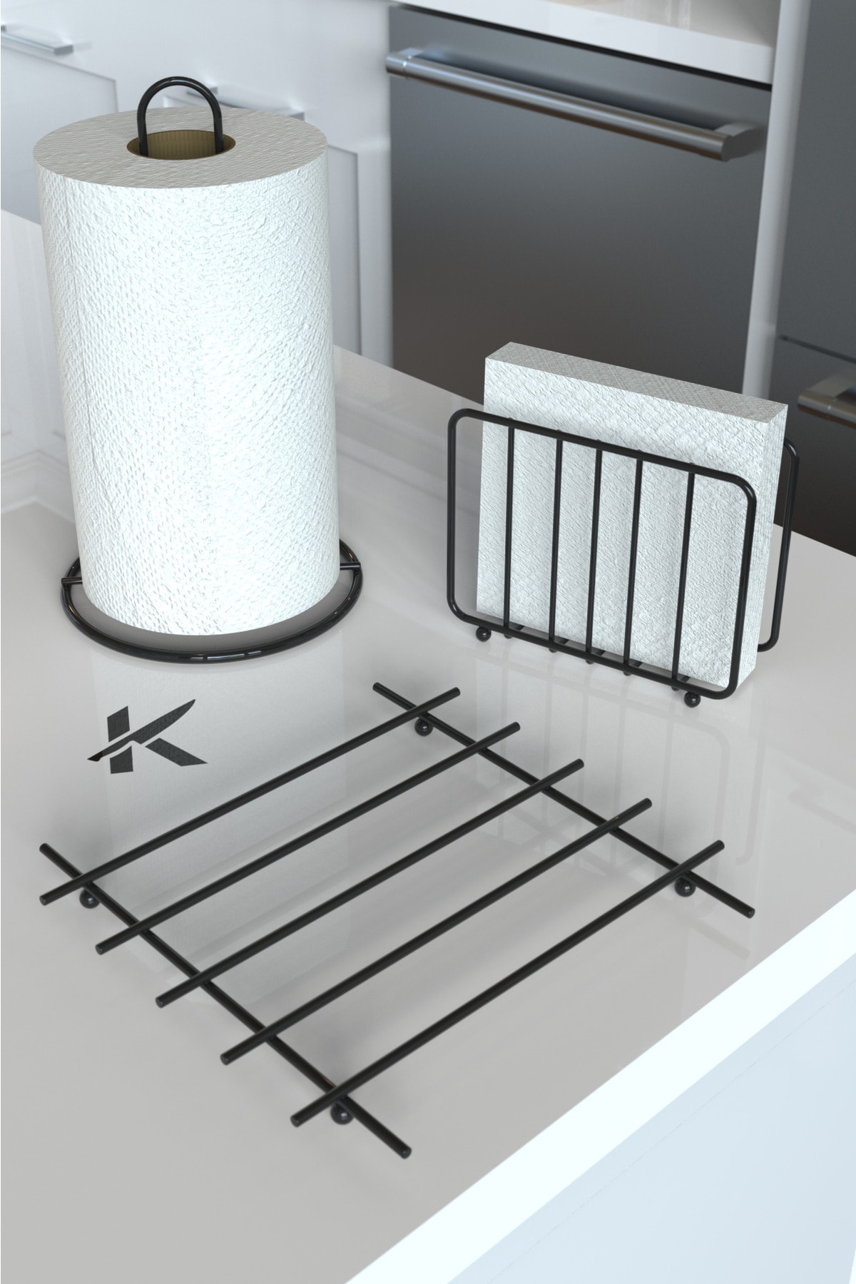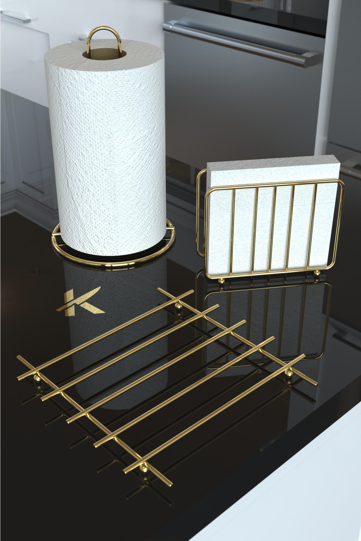 Servis Sunum Seti Havluluk Peçetelik Nihale Gold Altın Dolu Parlak Paslanmaz Çelik 3 Lü Mutfak Dekoratif Metal Havlu Peçetelik, Kağıt Havluluk