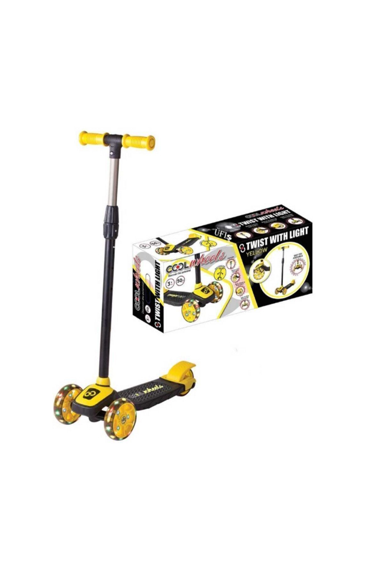 Ön iki tekerleği led ışıklıdır. 3-5 yaş arası için önerilir. Maksimum taşıma kapasitesi 30 kg'dır. Minimum 65 maksimum 77 cm olmak üzere 3 kademeli yükseklik ayarı yapılabilmektedir. Direksiyonu bisiklet gibi hareket kabiliyetine sahiptir.