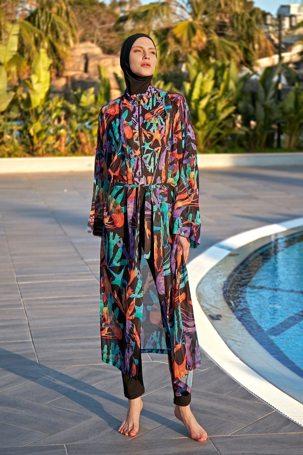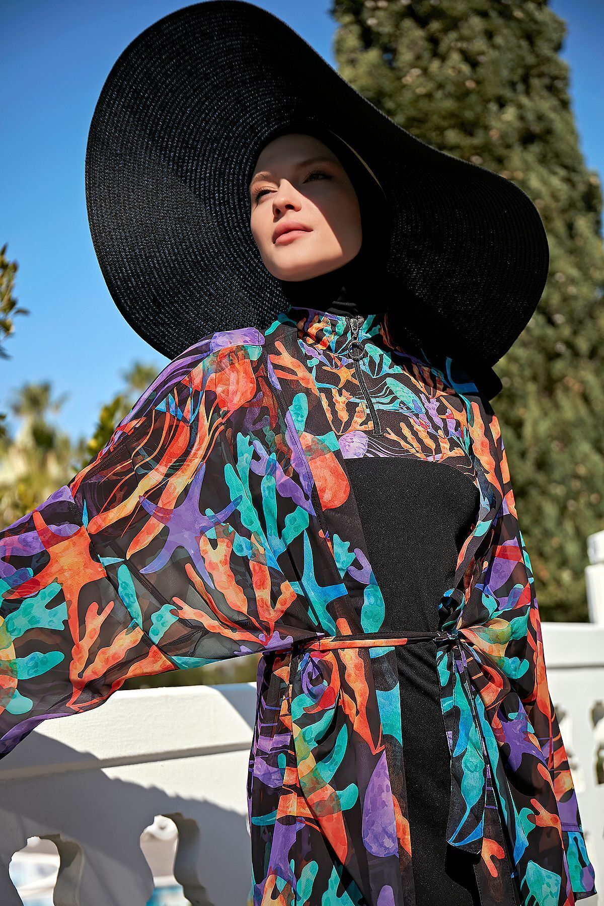 - Siyah renk seçeneğiyle, şıklığı ve zarafeti bir arada sunan Remsa Tesettür Mayo Üzerine Tek Kaftan Kimono Pareo, yaz aylarının vazgeçilmezi olacak.